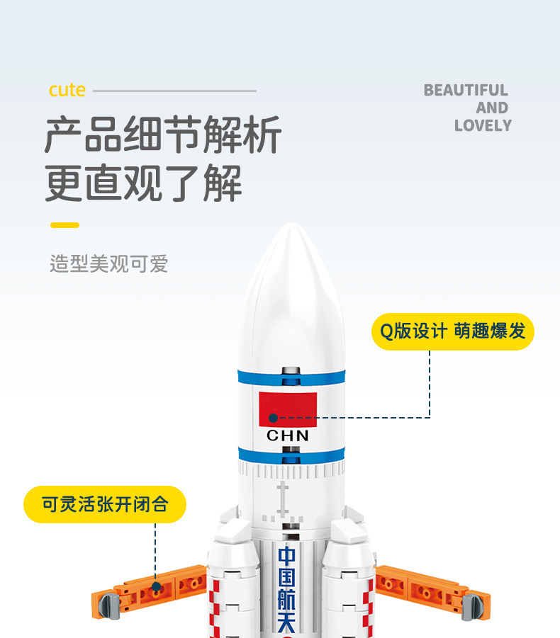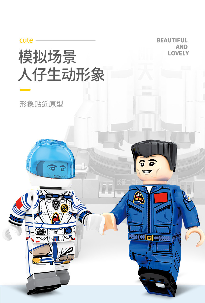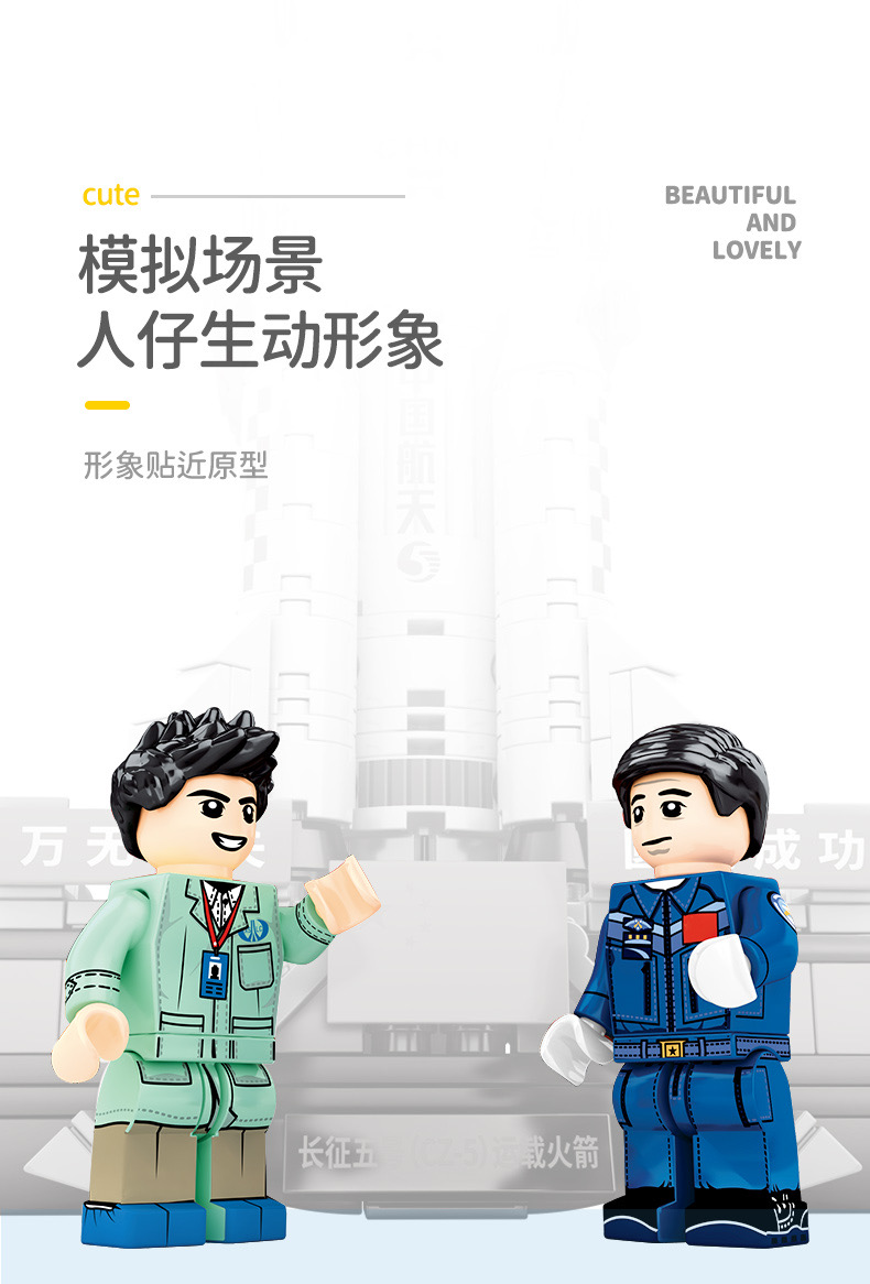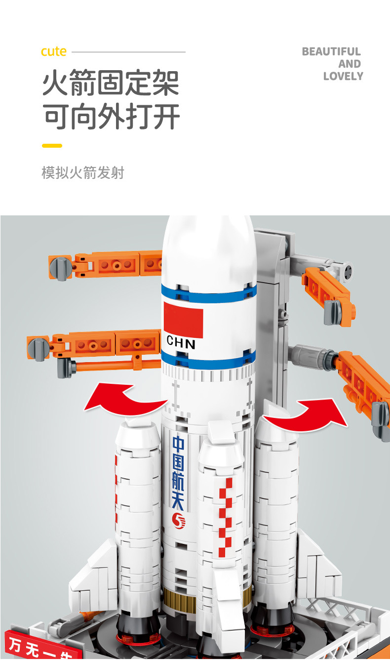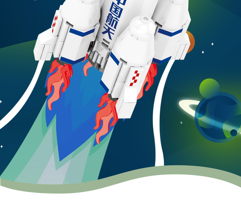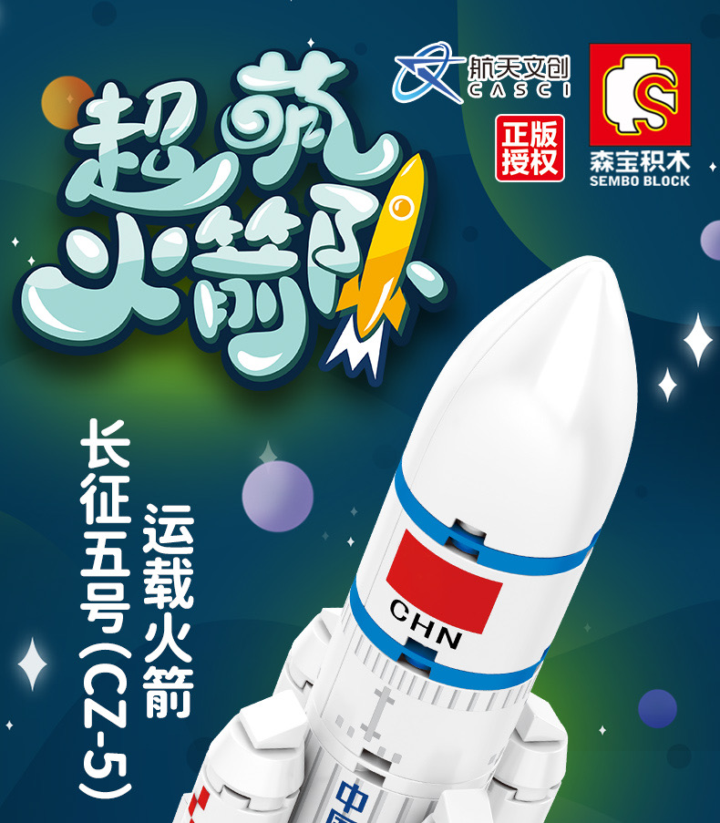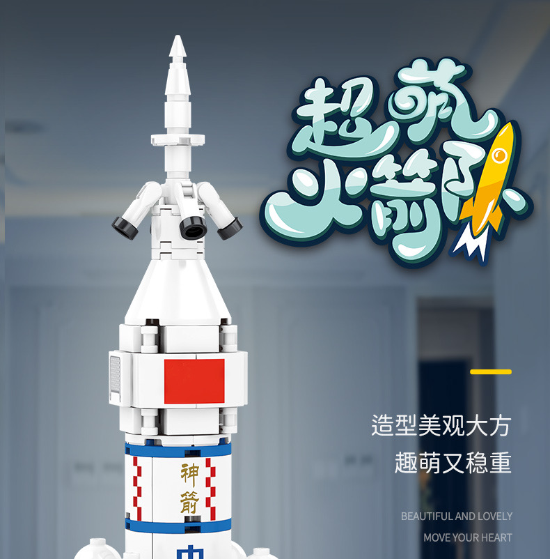 森宝积木航天文创正版超萌火箭队长征系列