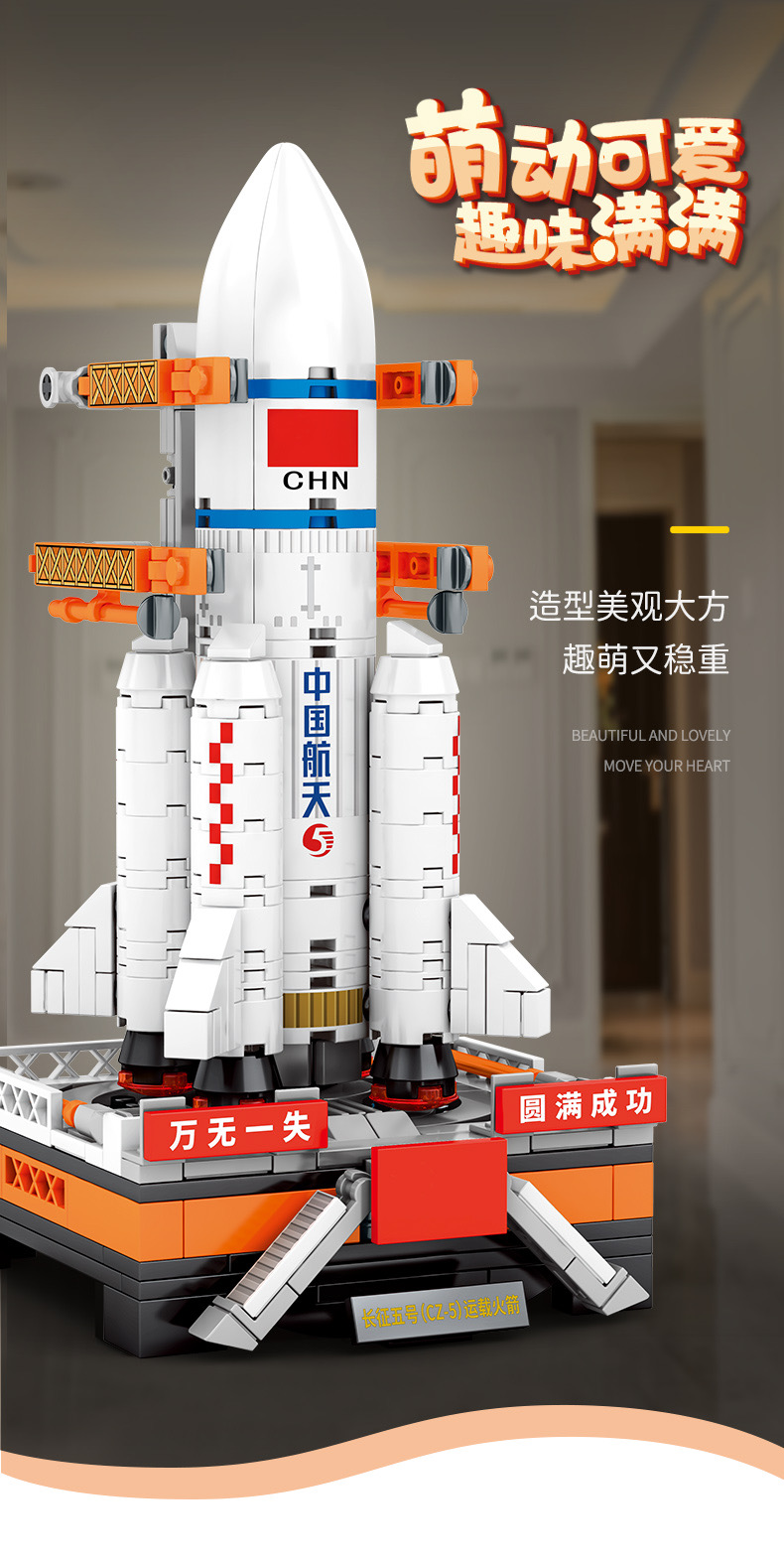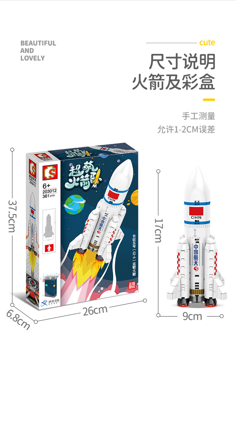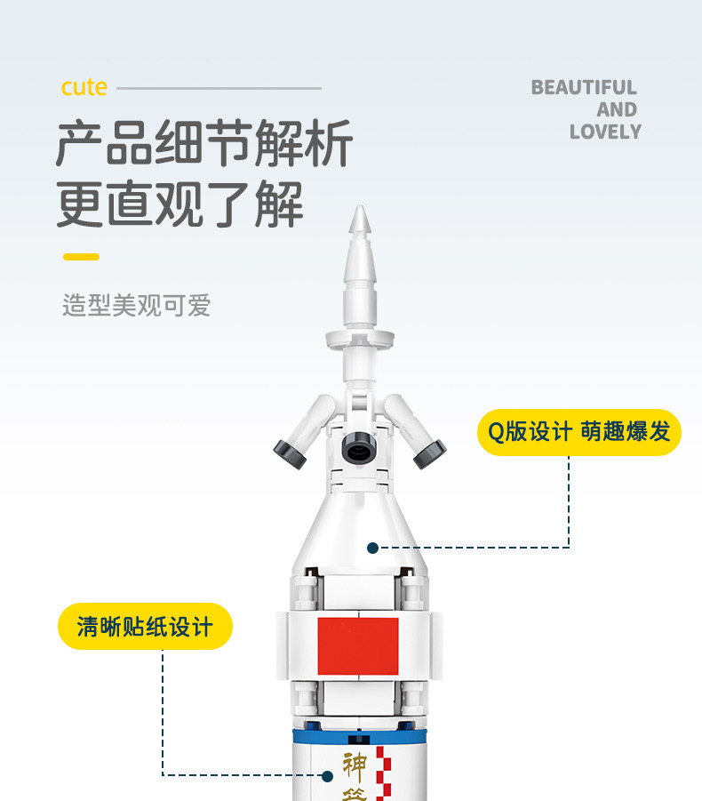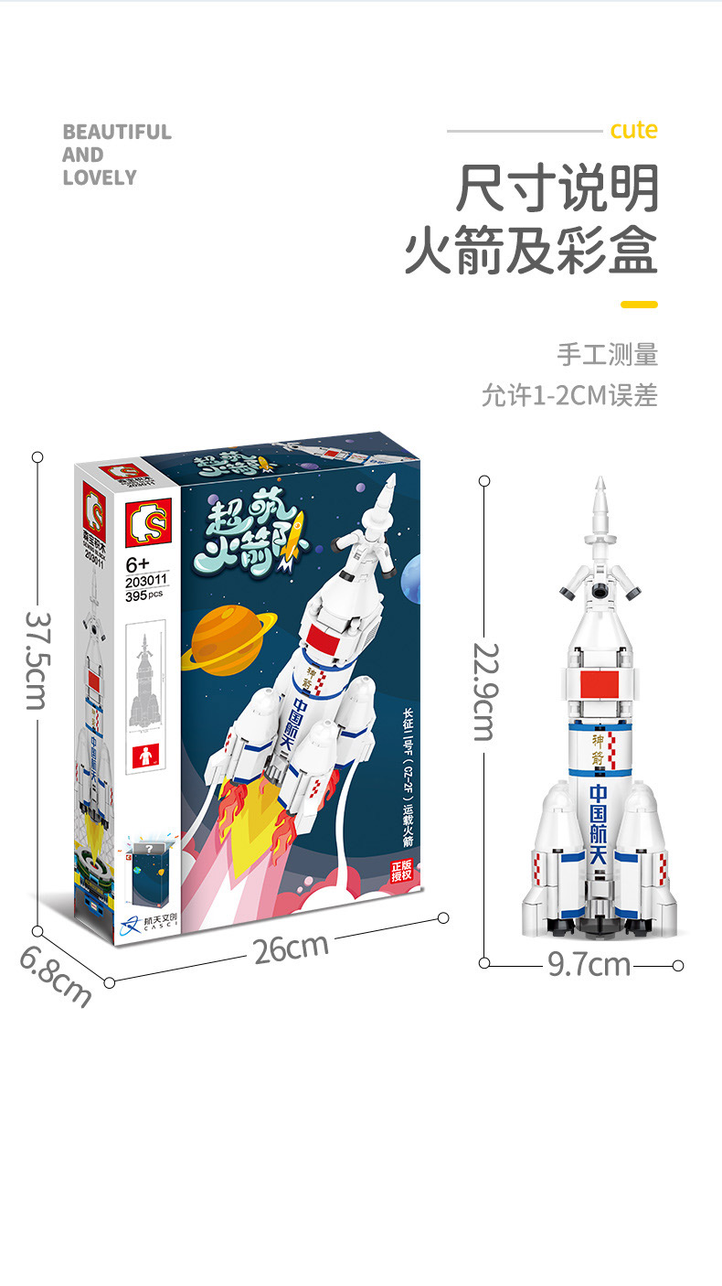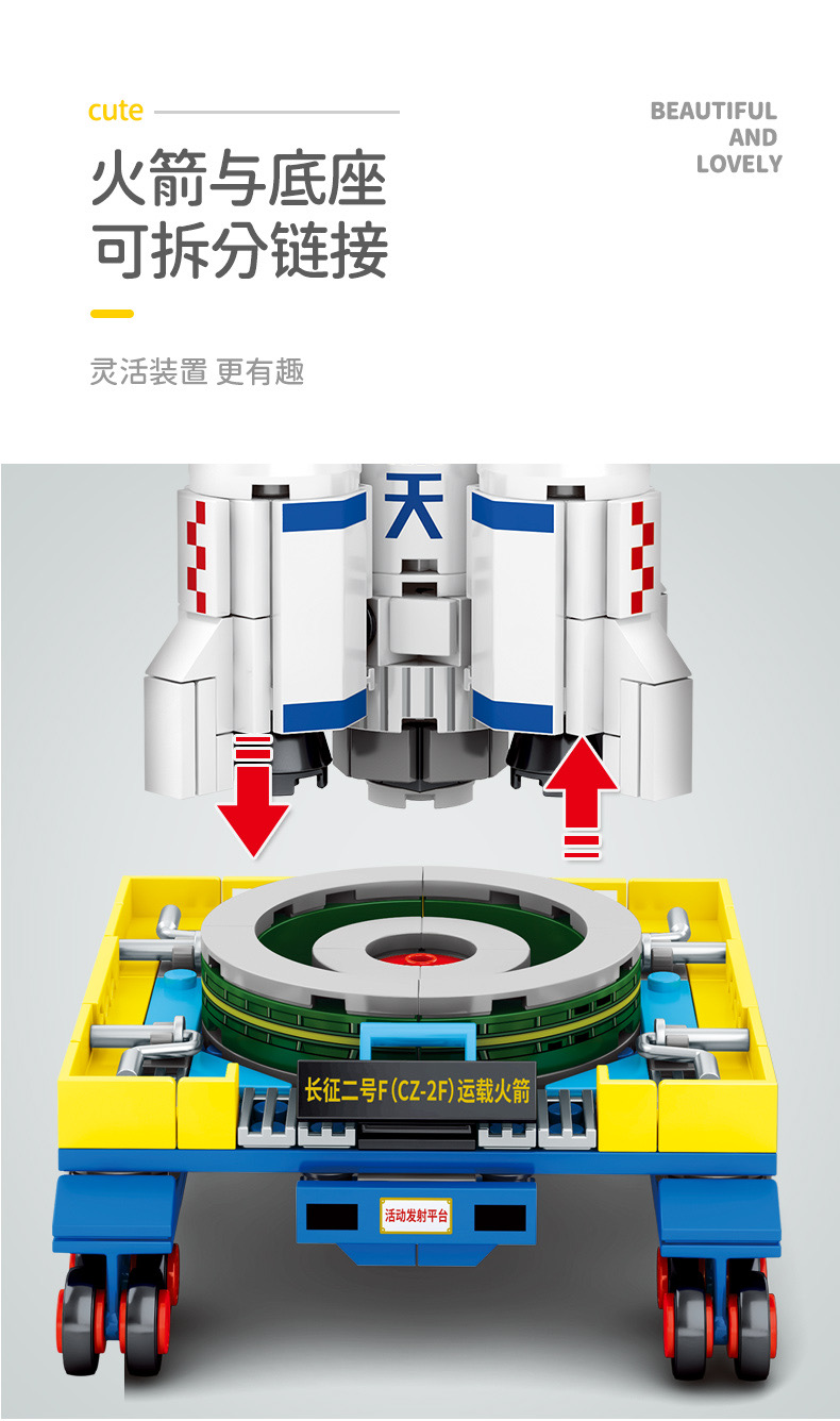 森宝积木航天文创正版超萌火箭队长征系列