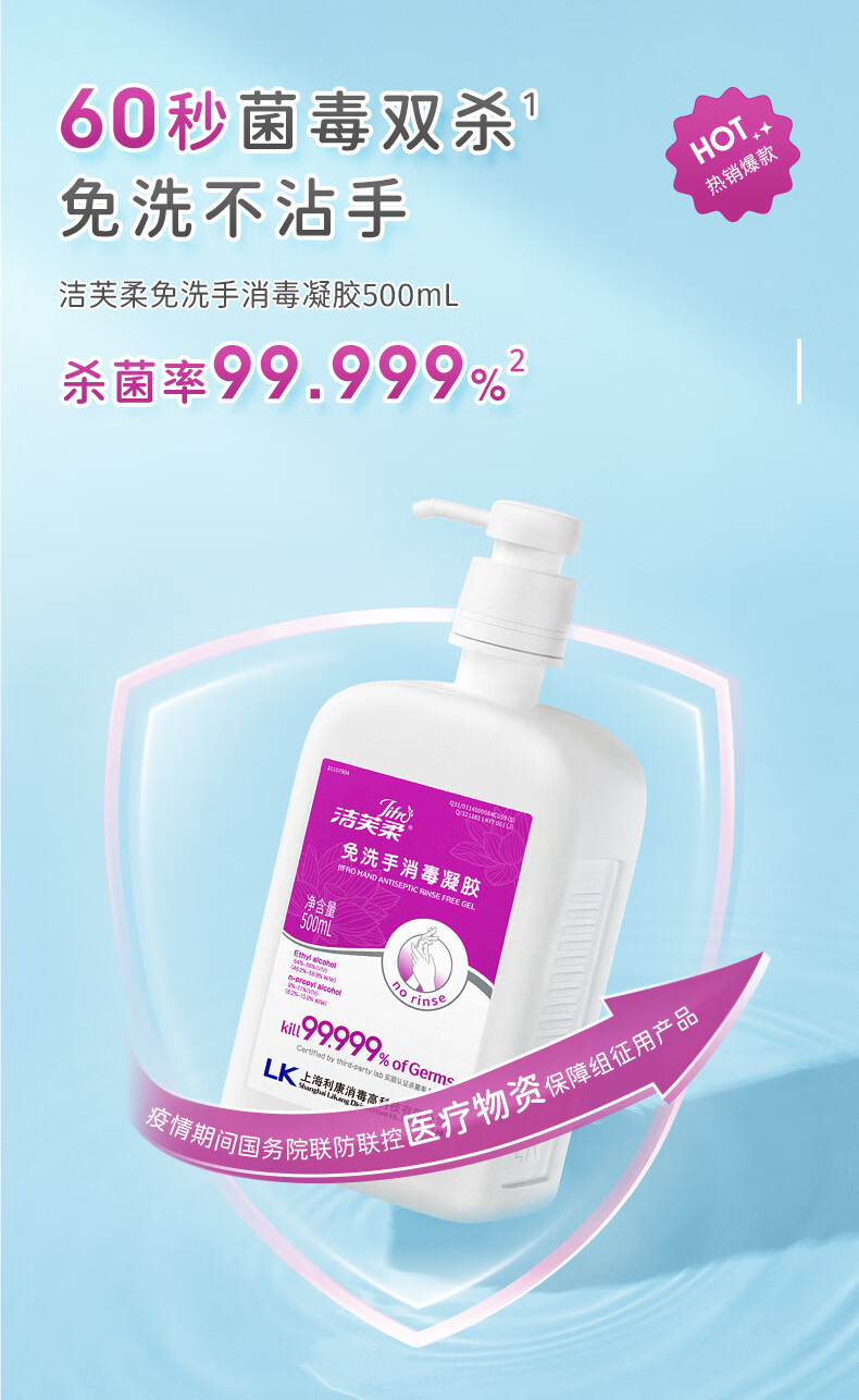 【ZY25】洁芙柔免洗洗手液凝胶500mL