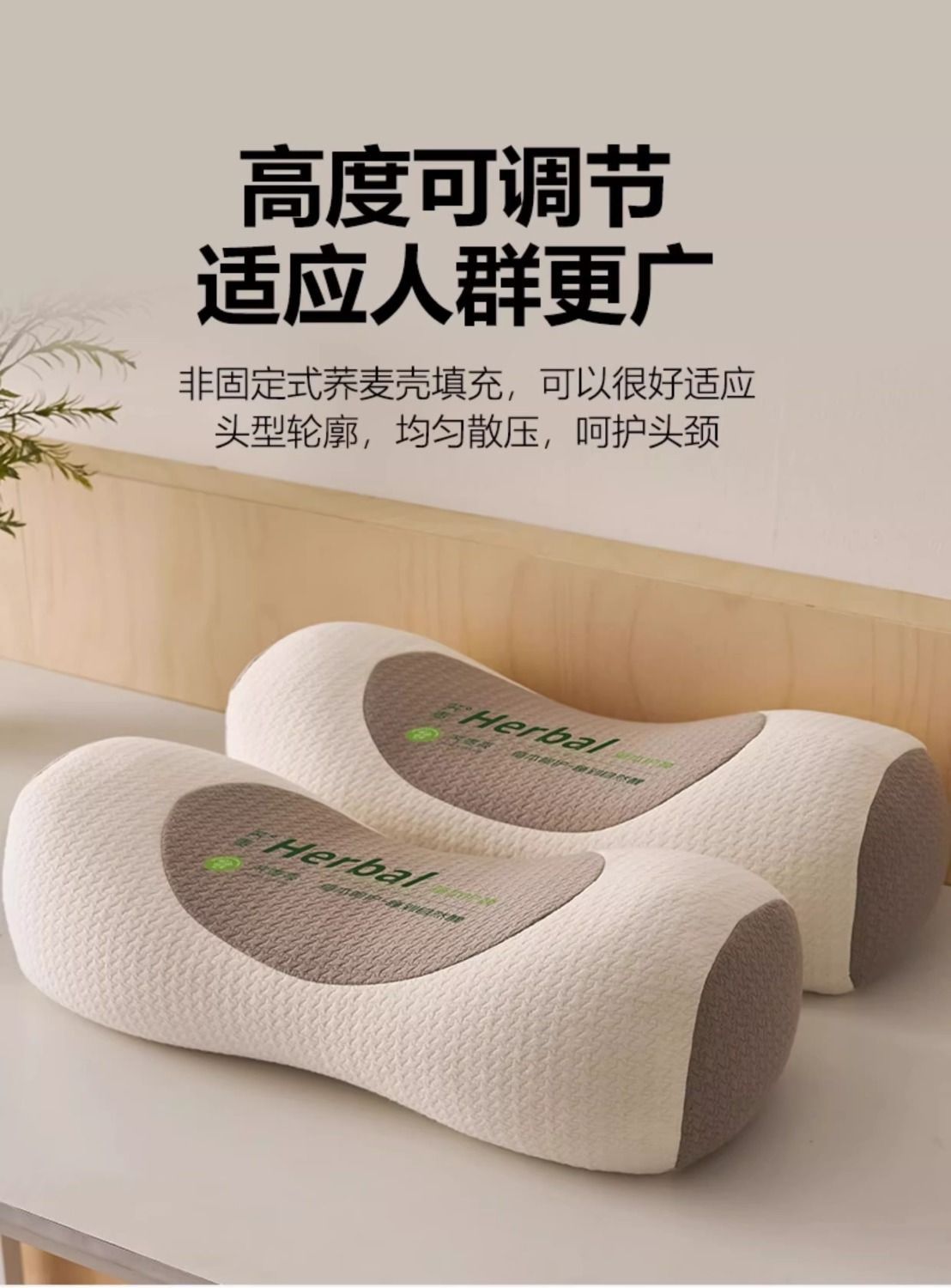「荞麦壳填充!贴合颈椎」荞麦枕头护颈椎助睡眠单人一只装枕芯一对成人圆柱牵引腰椎枕床上用品