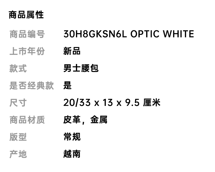 MICHAEL KORS 迈克 科尔斯 男士金属字母皮质腰包 白色 30H8GKSN6L OPTIC WHITE