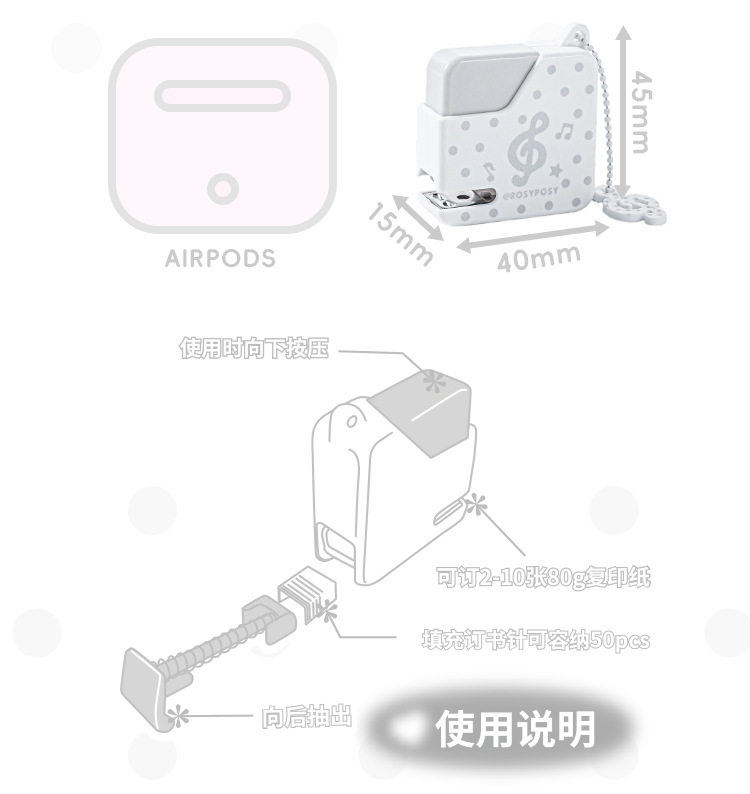 ROSRPOSY柔设Polka-Dot小方糖波点订书机