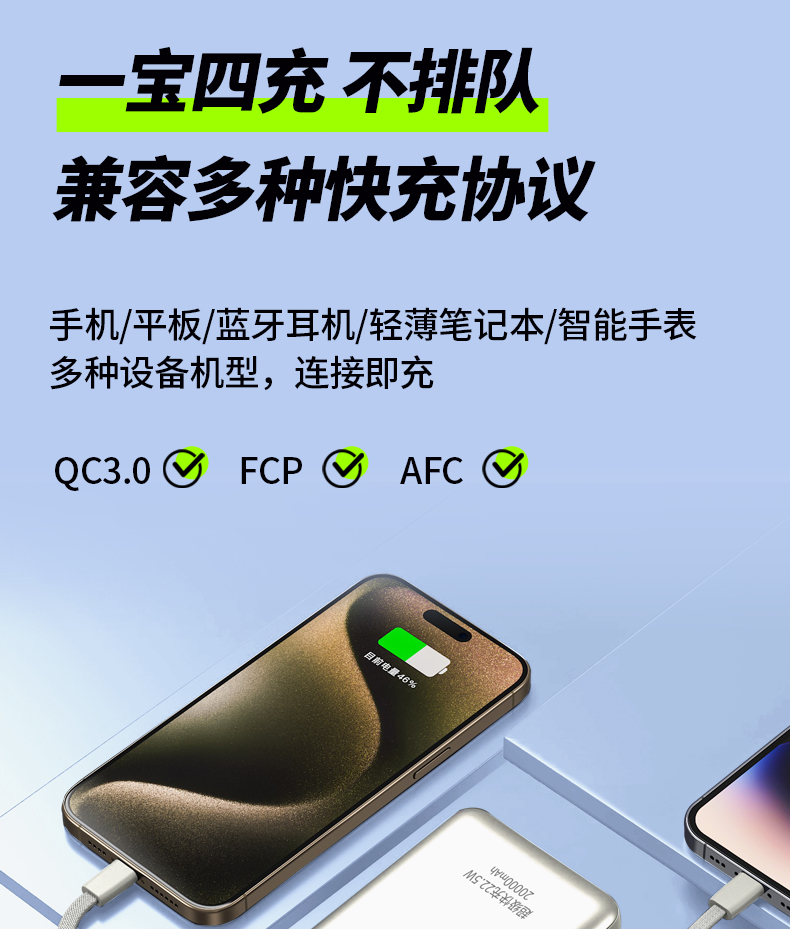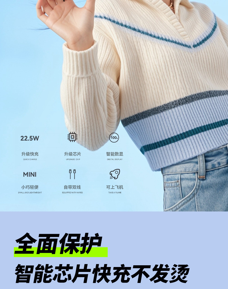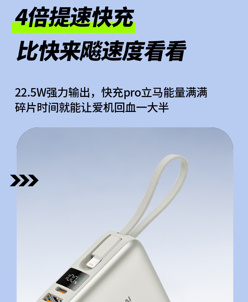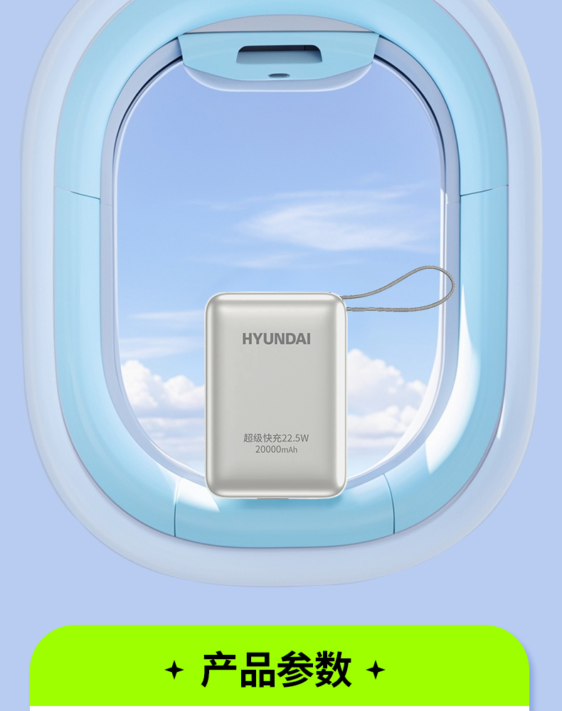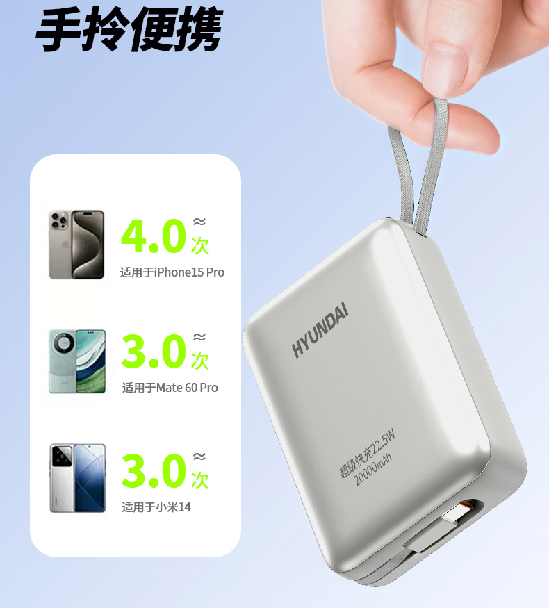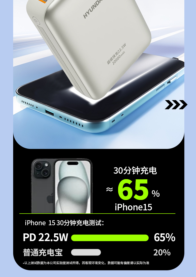HYUNDAI 自带线快充移动电源20000毫安电源22.5W快充 T180LF