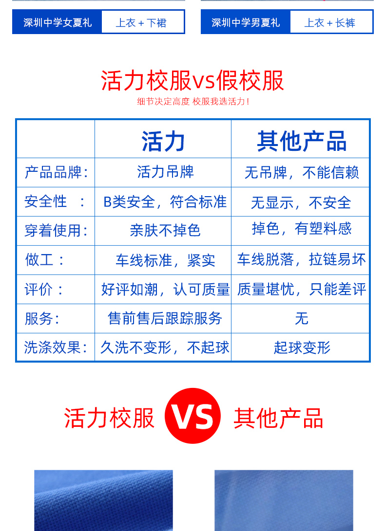 活力校服由深圳市中南活力实业股份有限公司创建的品牌,深圳二十一年老品牌,教育局中标企业;主营深圳校服、广州校服、东莞校服、佛山校服、肇庆校服、江苏校服、鞋袜、学生床上用品等学生课桌椅一站式教育领域产品