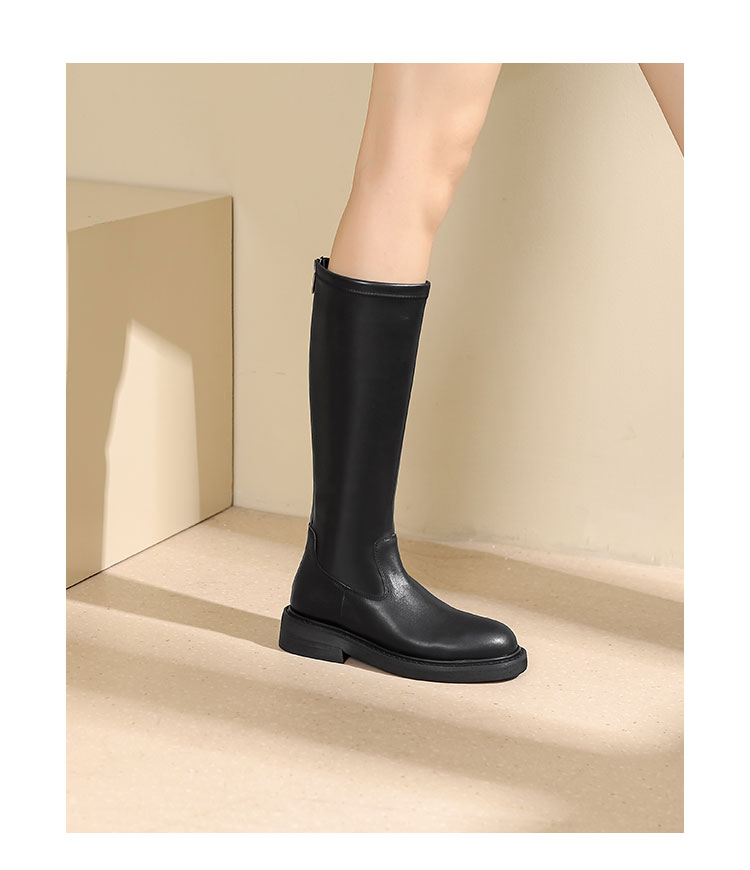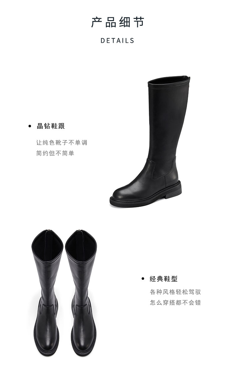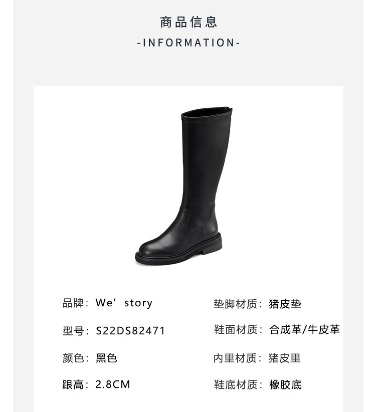 【专柜同款】冬季圆头中筒马丁靴百搭弹力骑士靴瘦瘦靴女S22DO82481