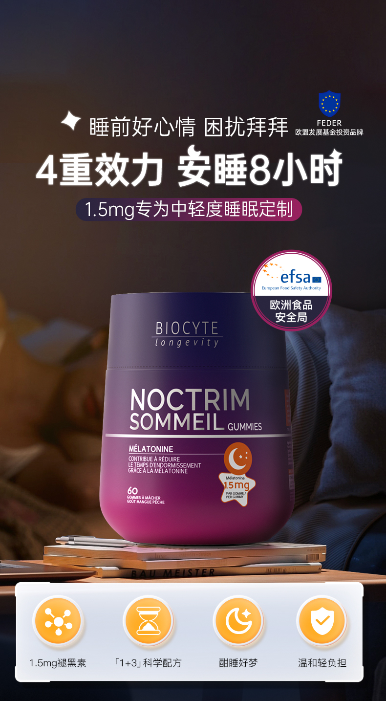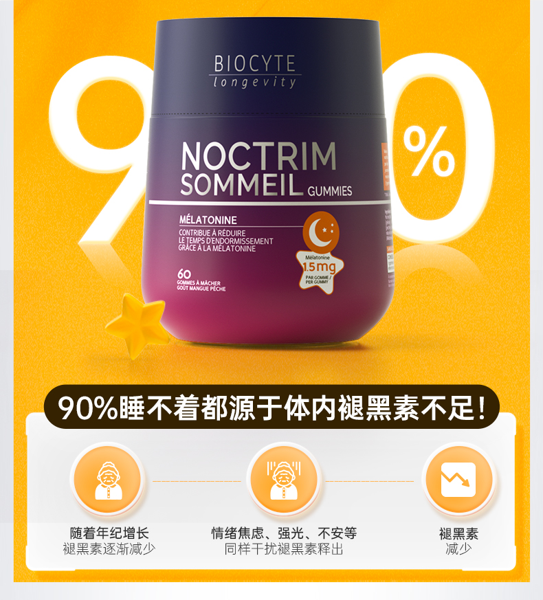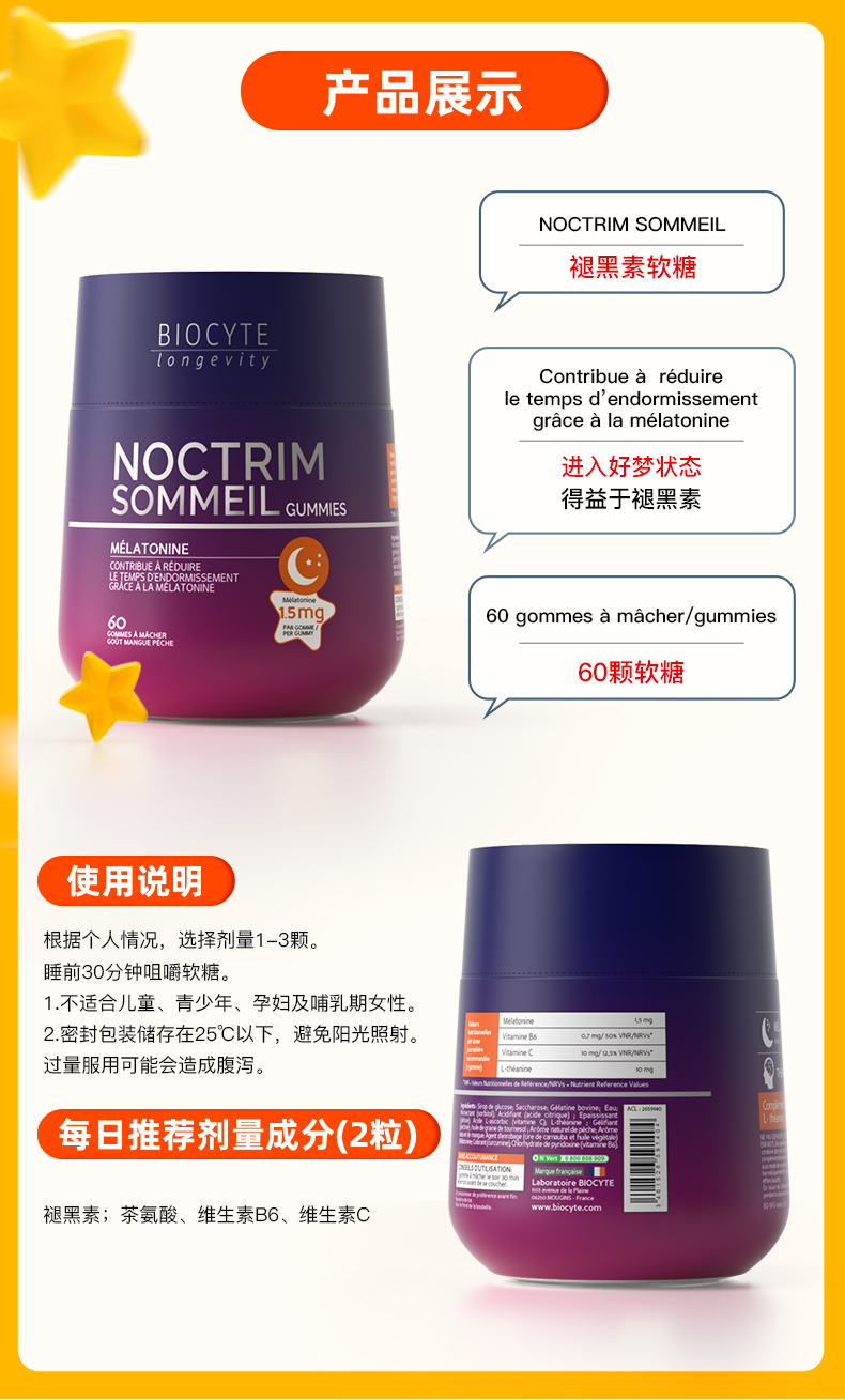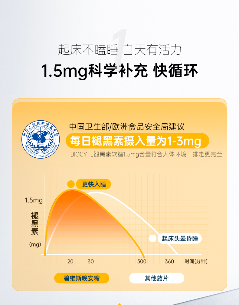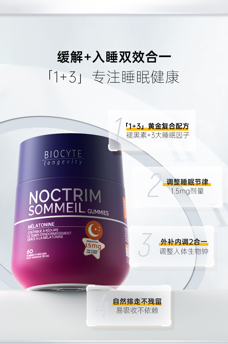 保税直发 BIOCYTE 碧维斯 褪黑素睡眠软糖(1.5mg)60粒/瓶 1瓶/2瓶/3瓶
