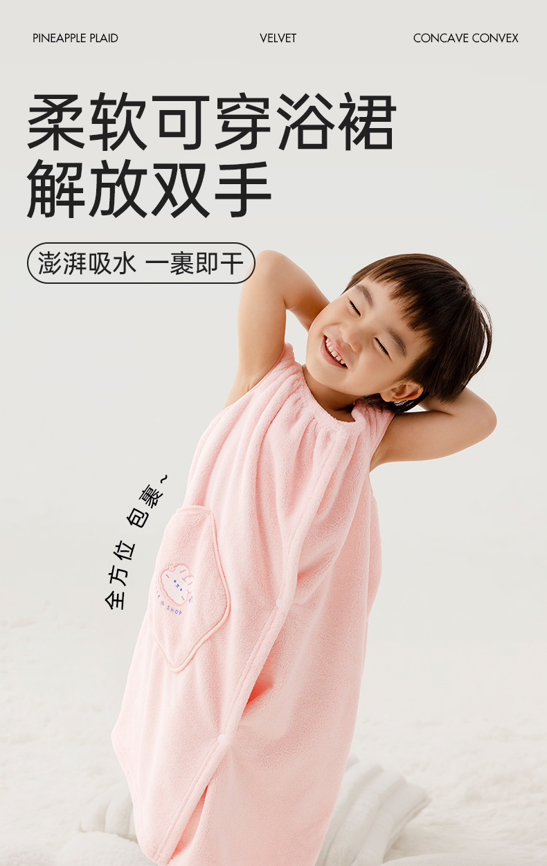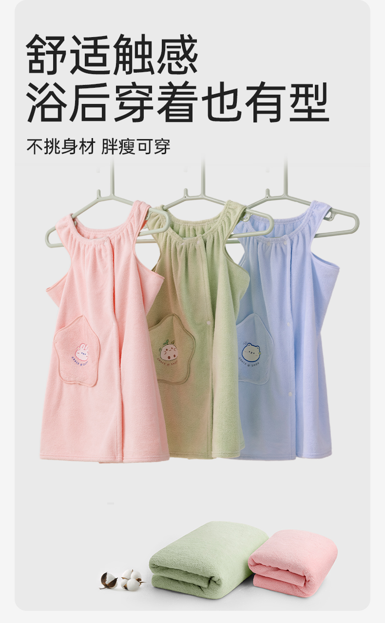 家用大浴巾可穿可裹少女浴袍洗澡巾儿童浴裙不掉毛居家浴袍婴幼儿