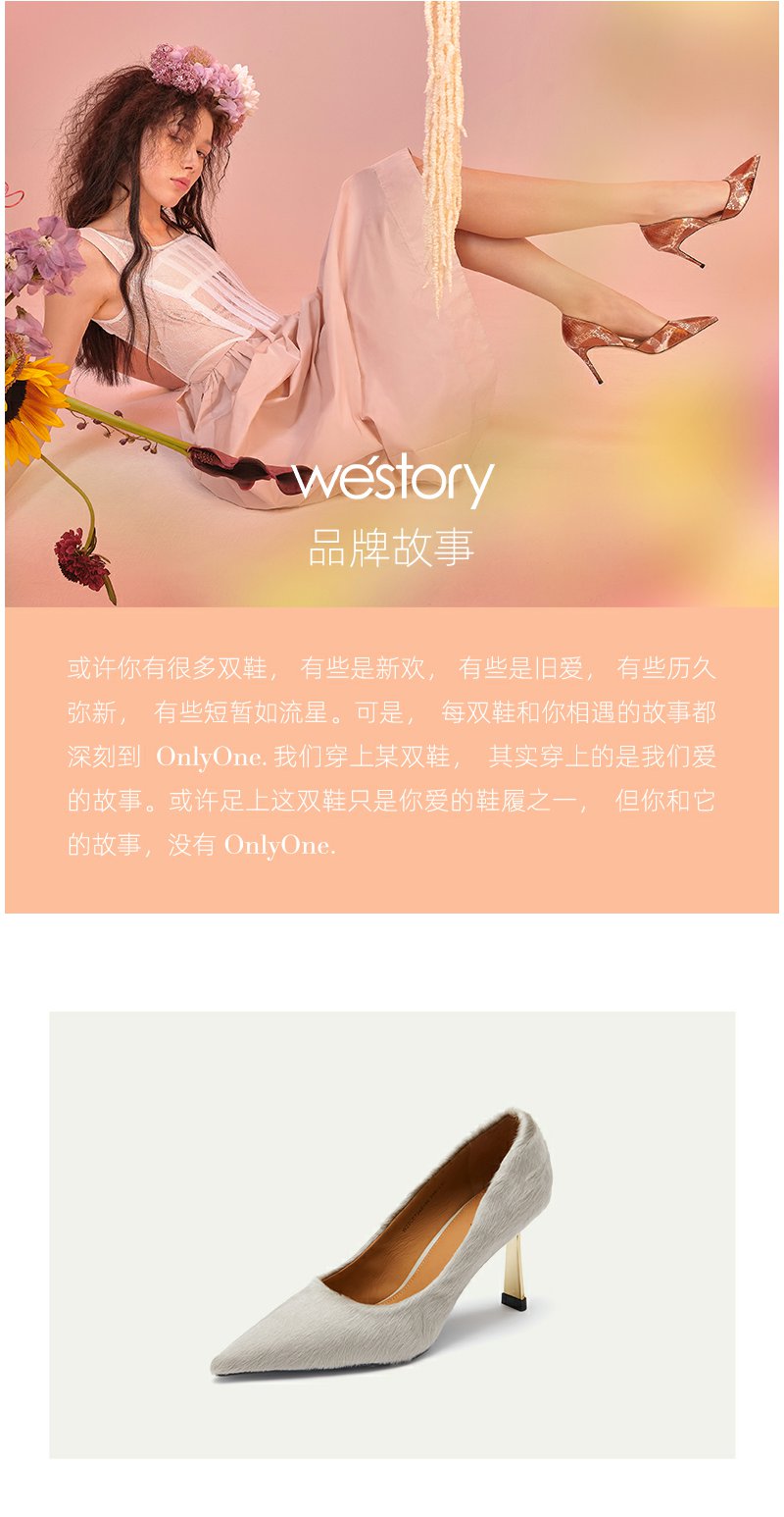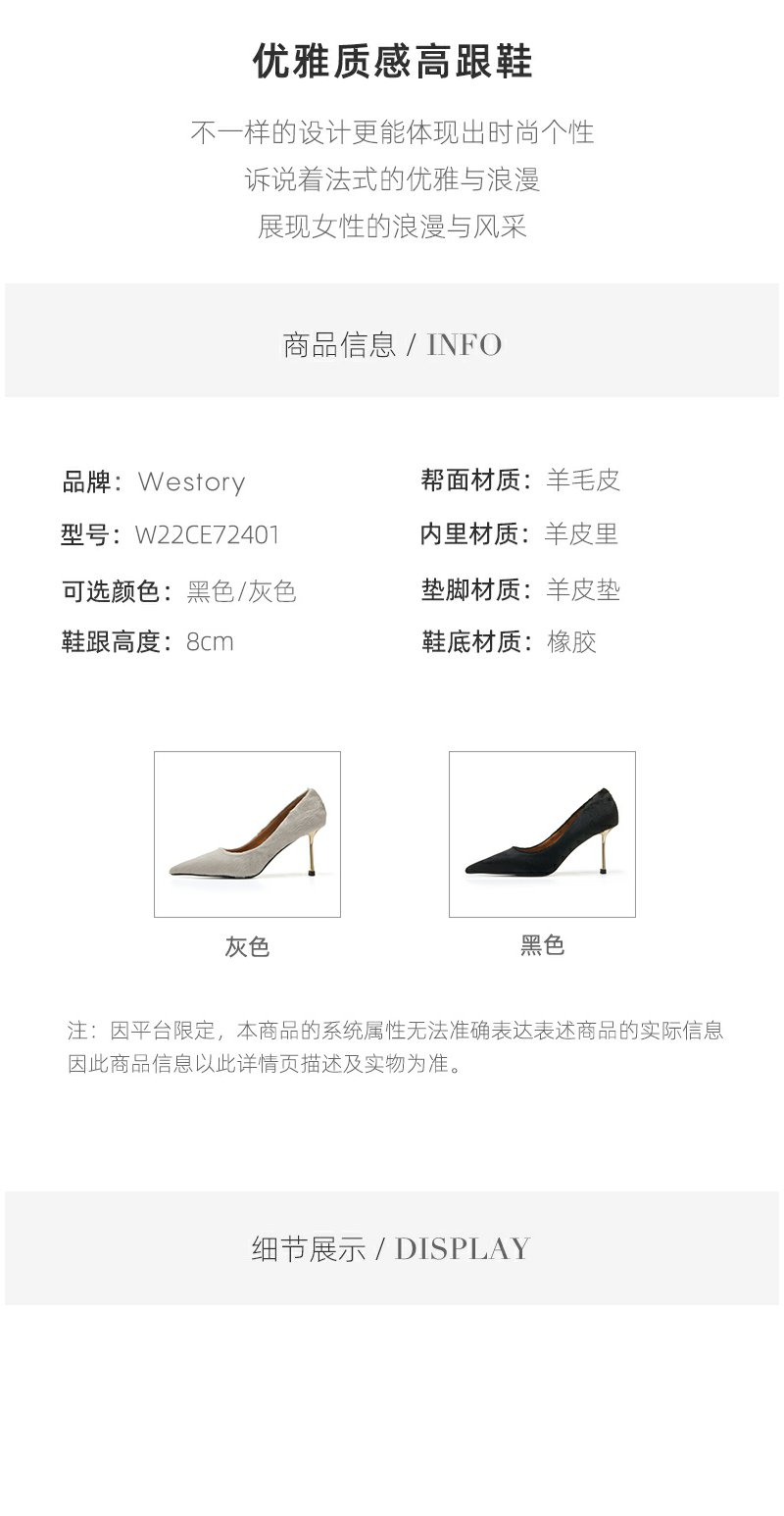 westory女鞋2021秋季新款尖头优雅气质通勤百搭细跟高跟鞋浅口单鞋W21CE71021