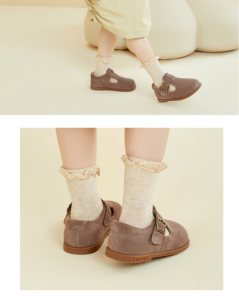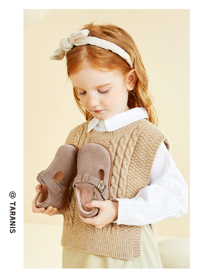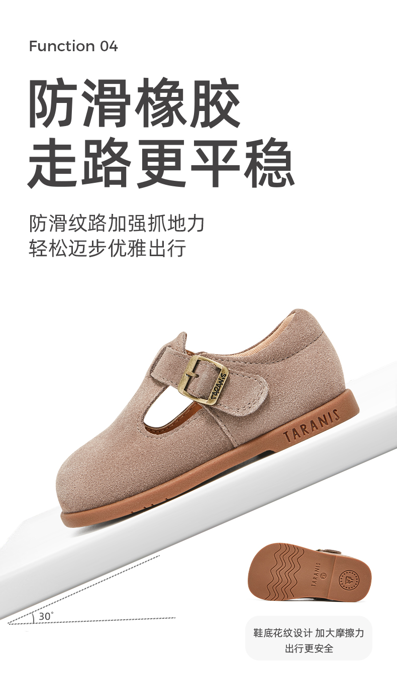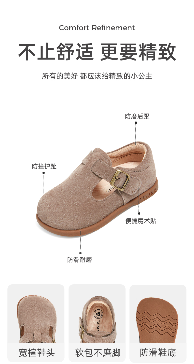 泰兰尼斯秋季新款儿童学步鞋女童包头软底复古宝宝皮鞋T03T4C5410