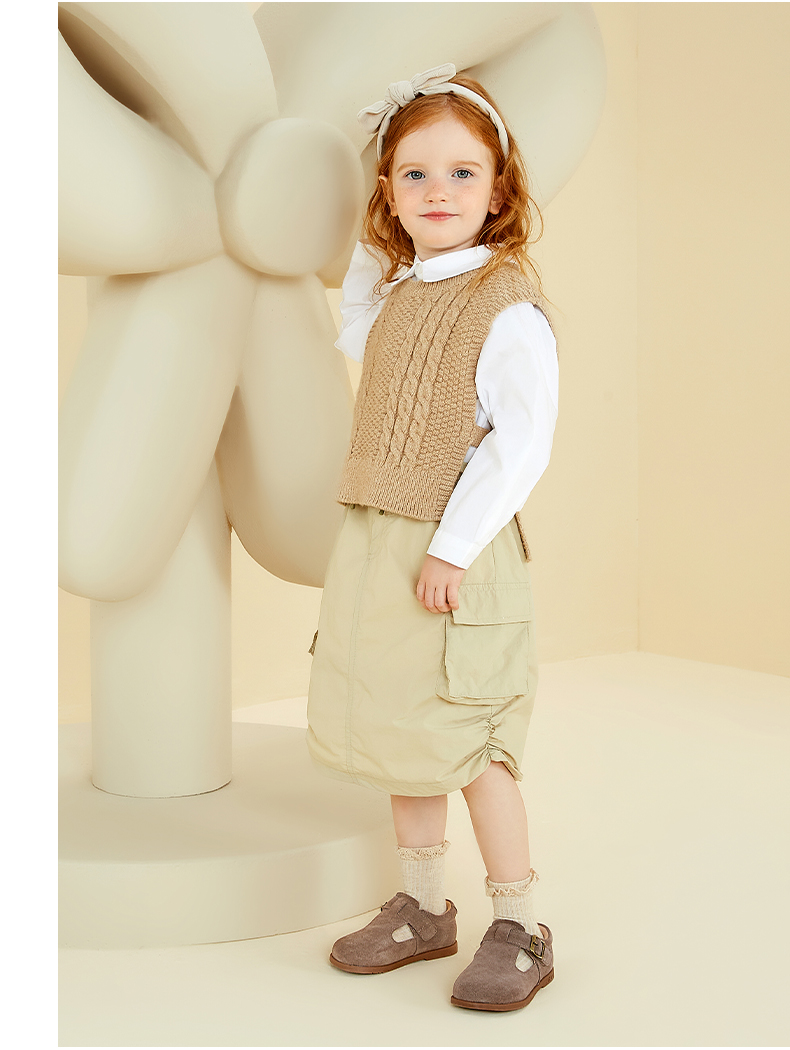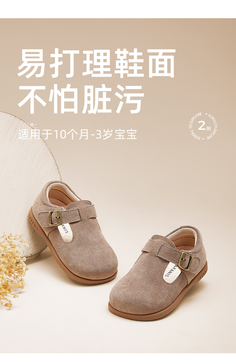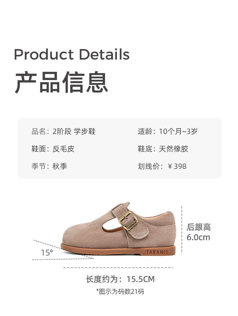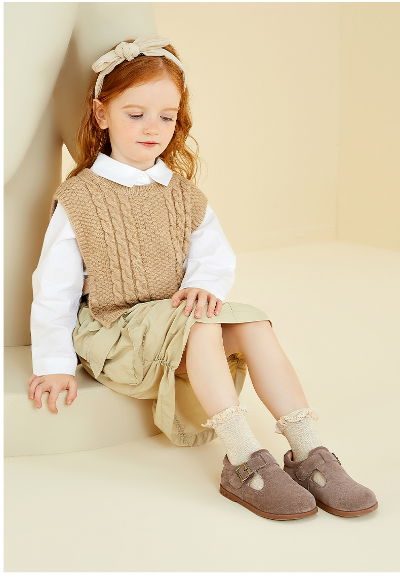 泰兰尼斯秋季新款儿童学步鞋女童包头软底复古宝宝皮鞋T03T4C5410