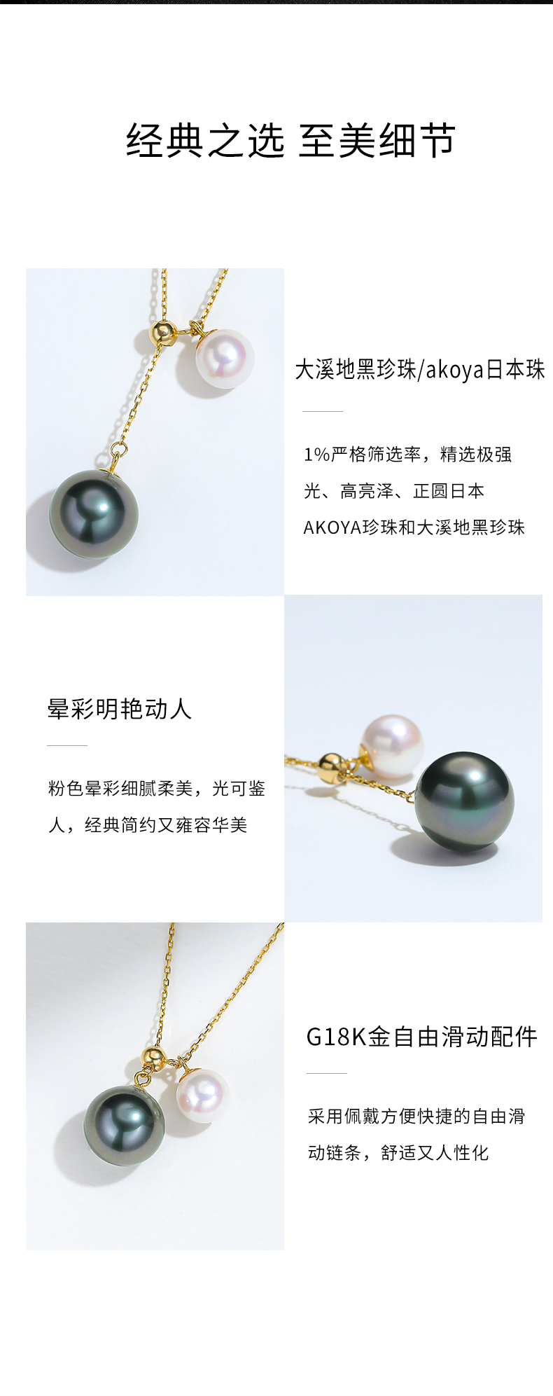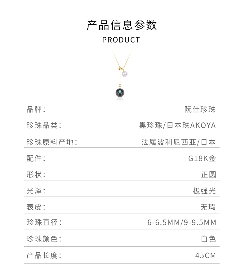 阮仕依恋系列 黑珍珠/日本AKOYA海水G18K金珍珠链 NY6-9.5YLAB