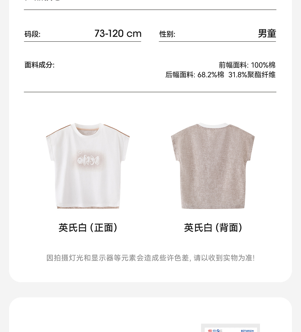 英氏男童短袖T恤夏季透气凉爽上衣吸汗T恤2025新款YRTCJ2R018A
