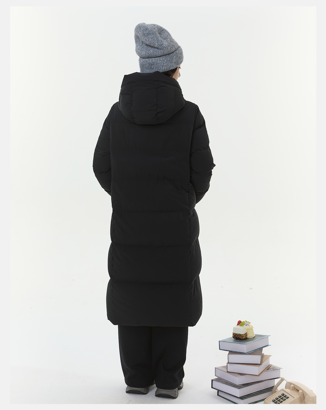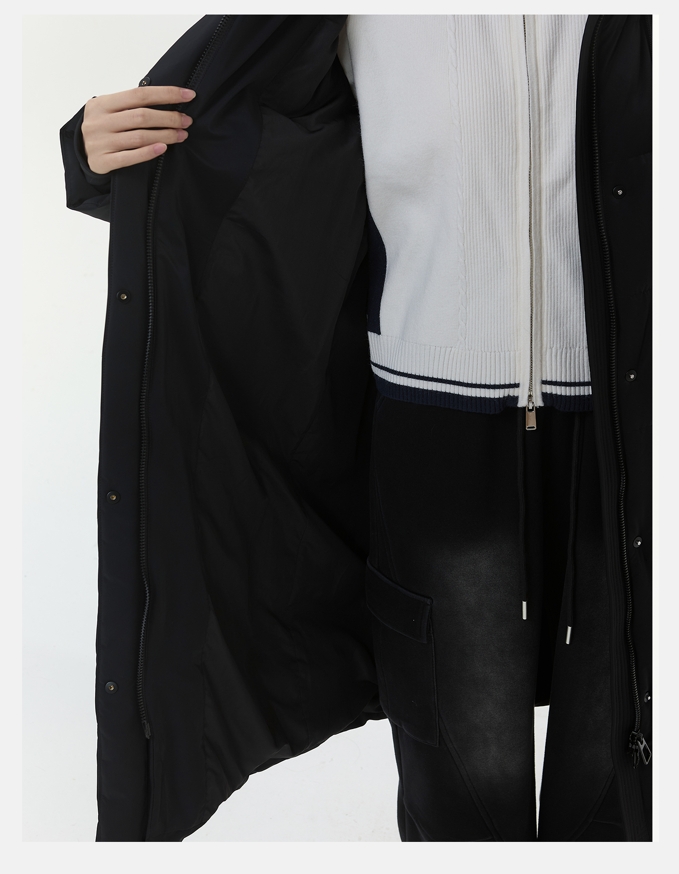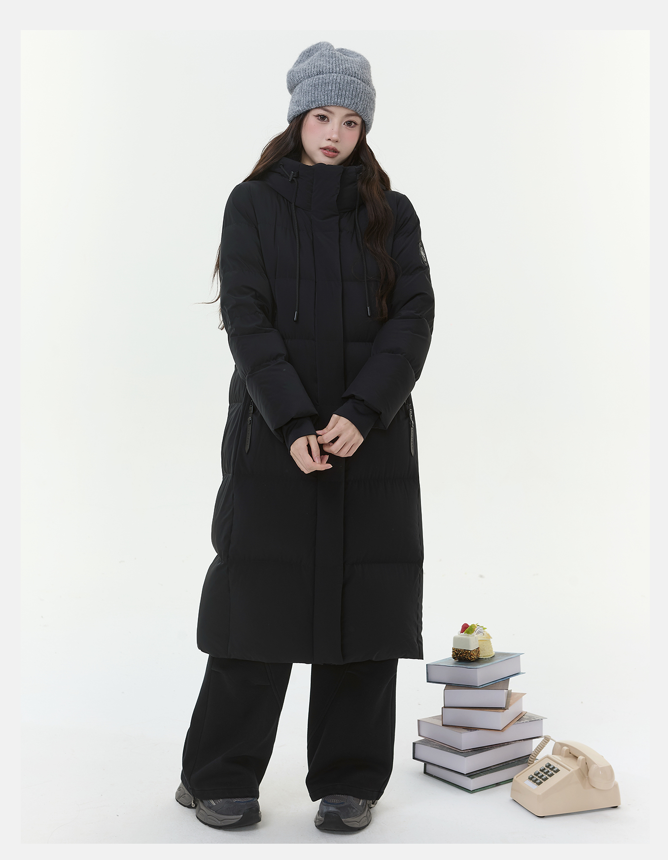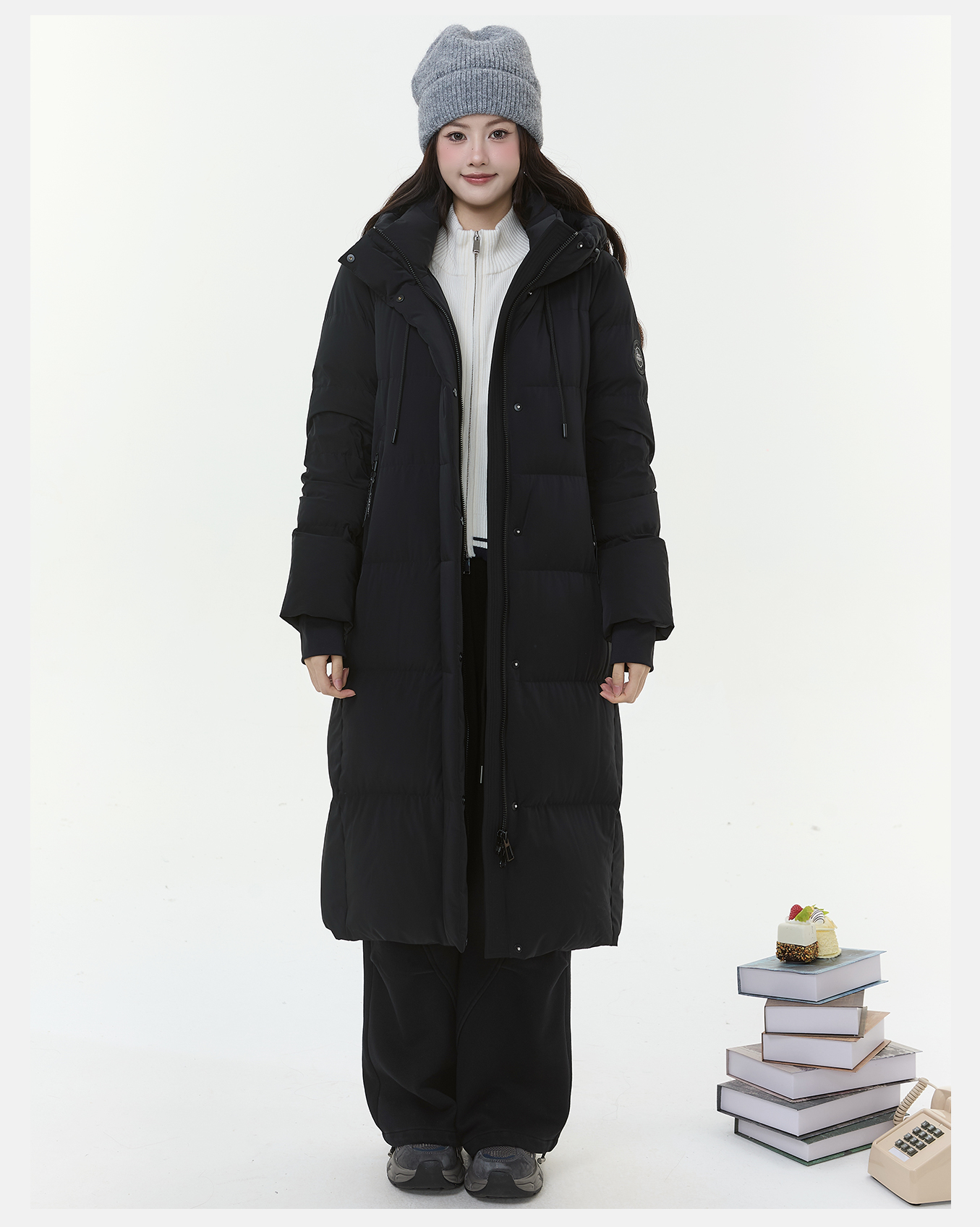 P&X设计师女装2025冬季连帽户外防风长款羽绒服825424027 黑色