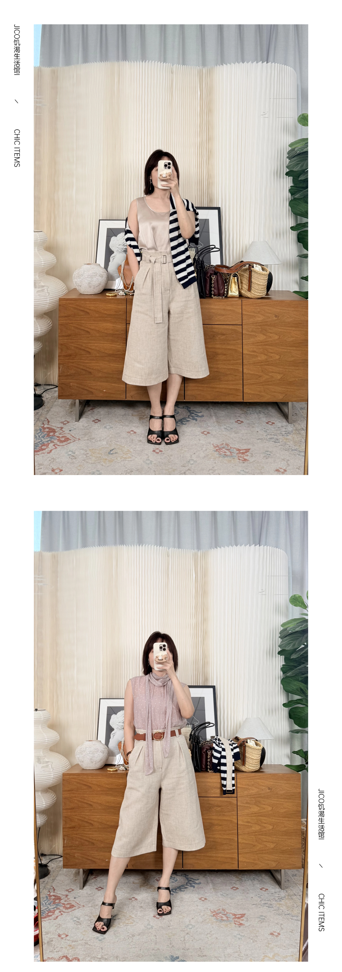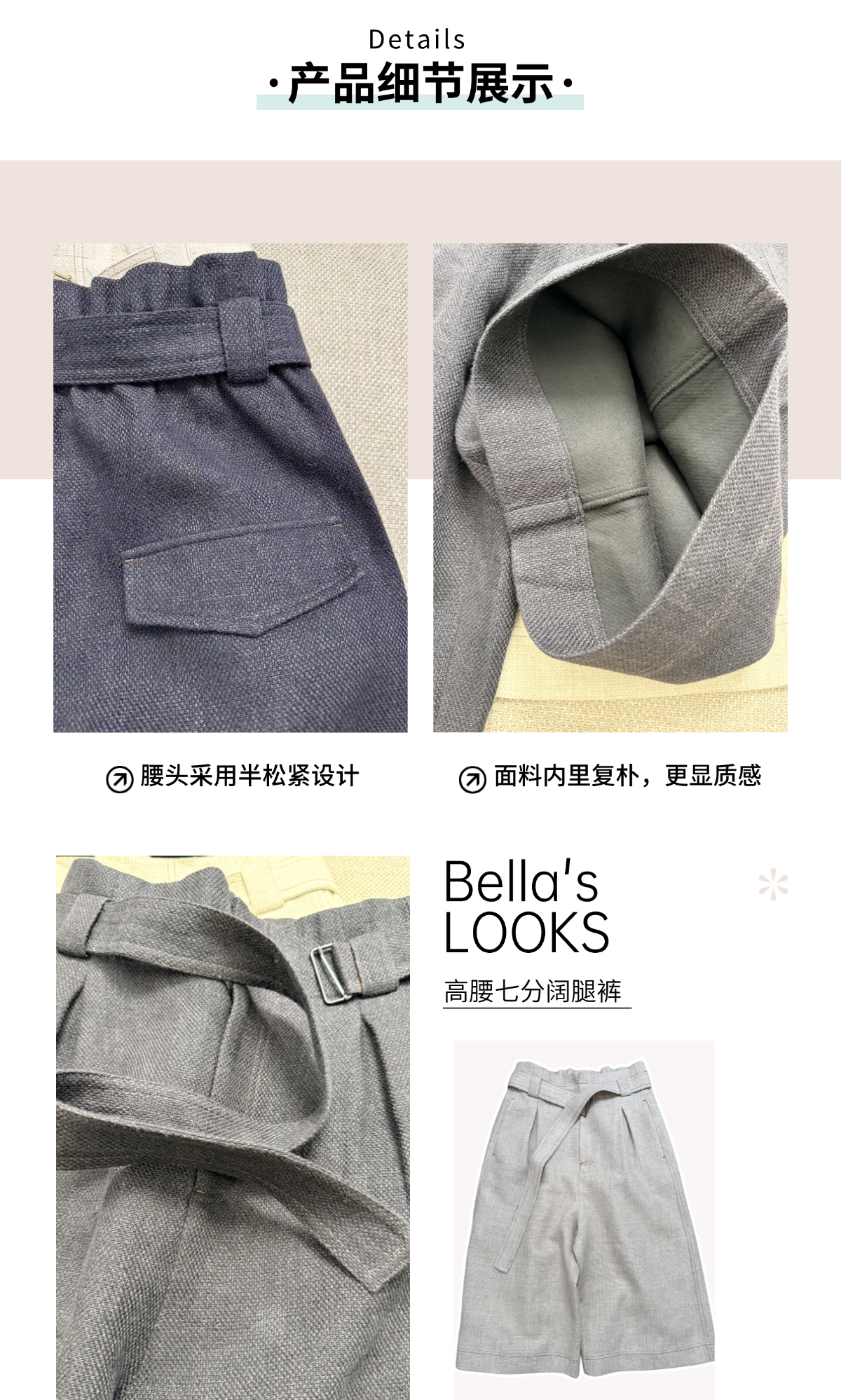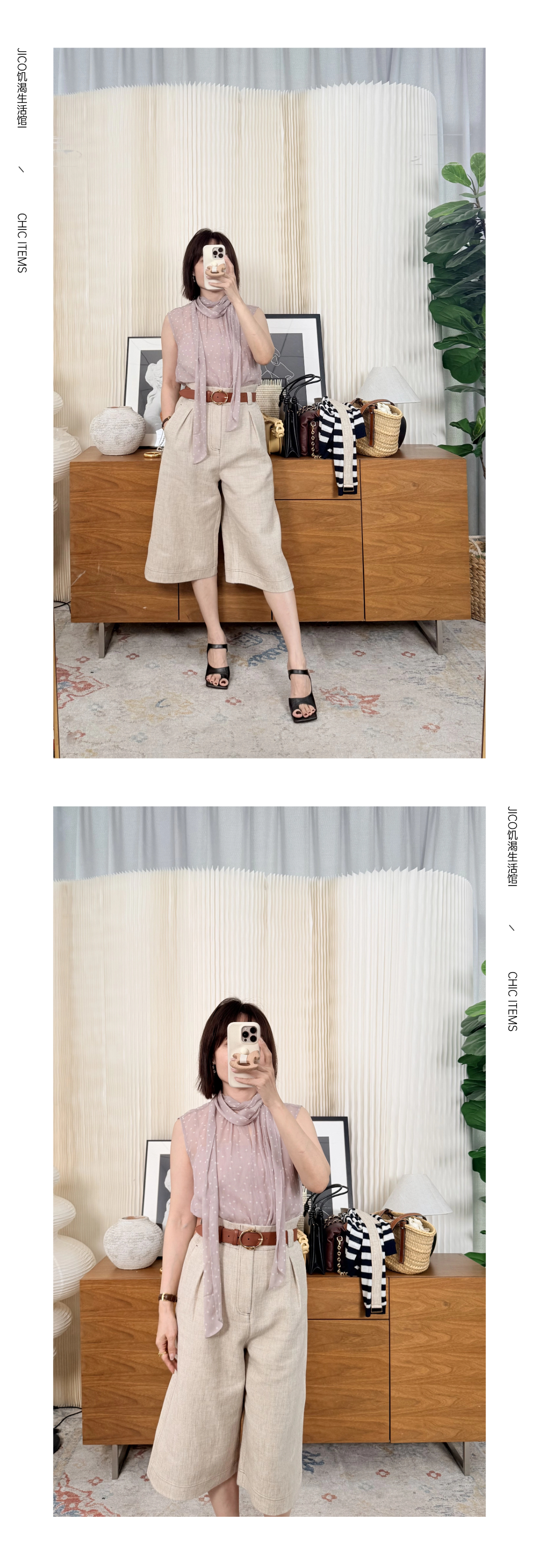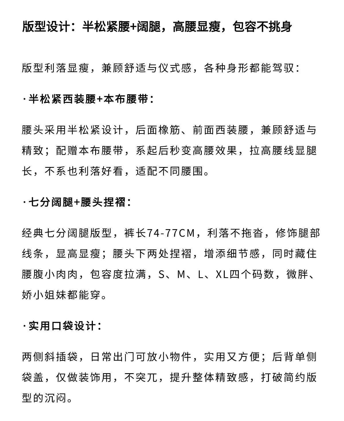 女爵士魅力 定纺60亚麻40棉混纺 高腰七分阔腿裤 抗皱挺括时髦款
