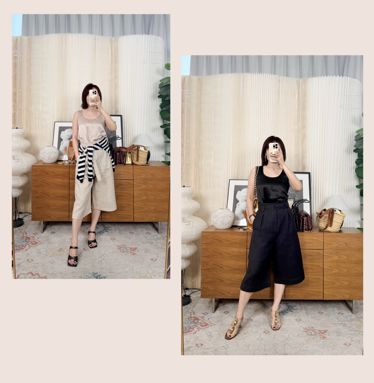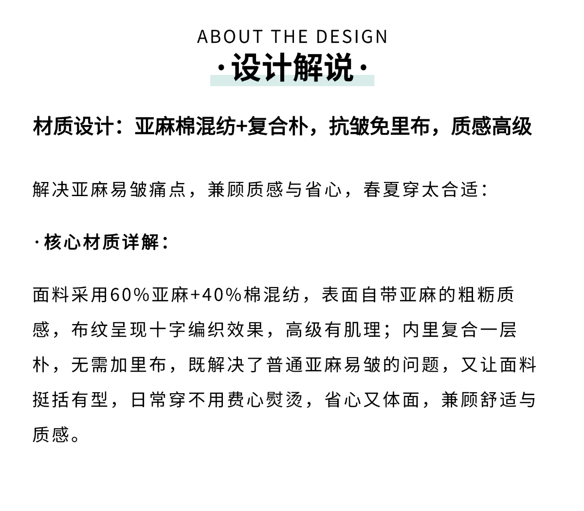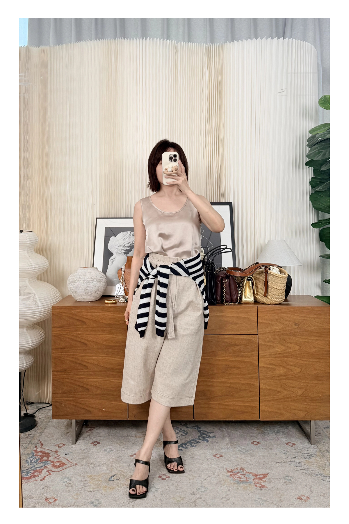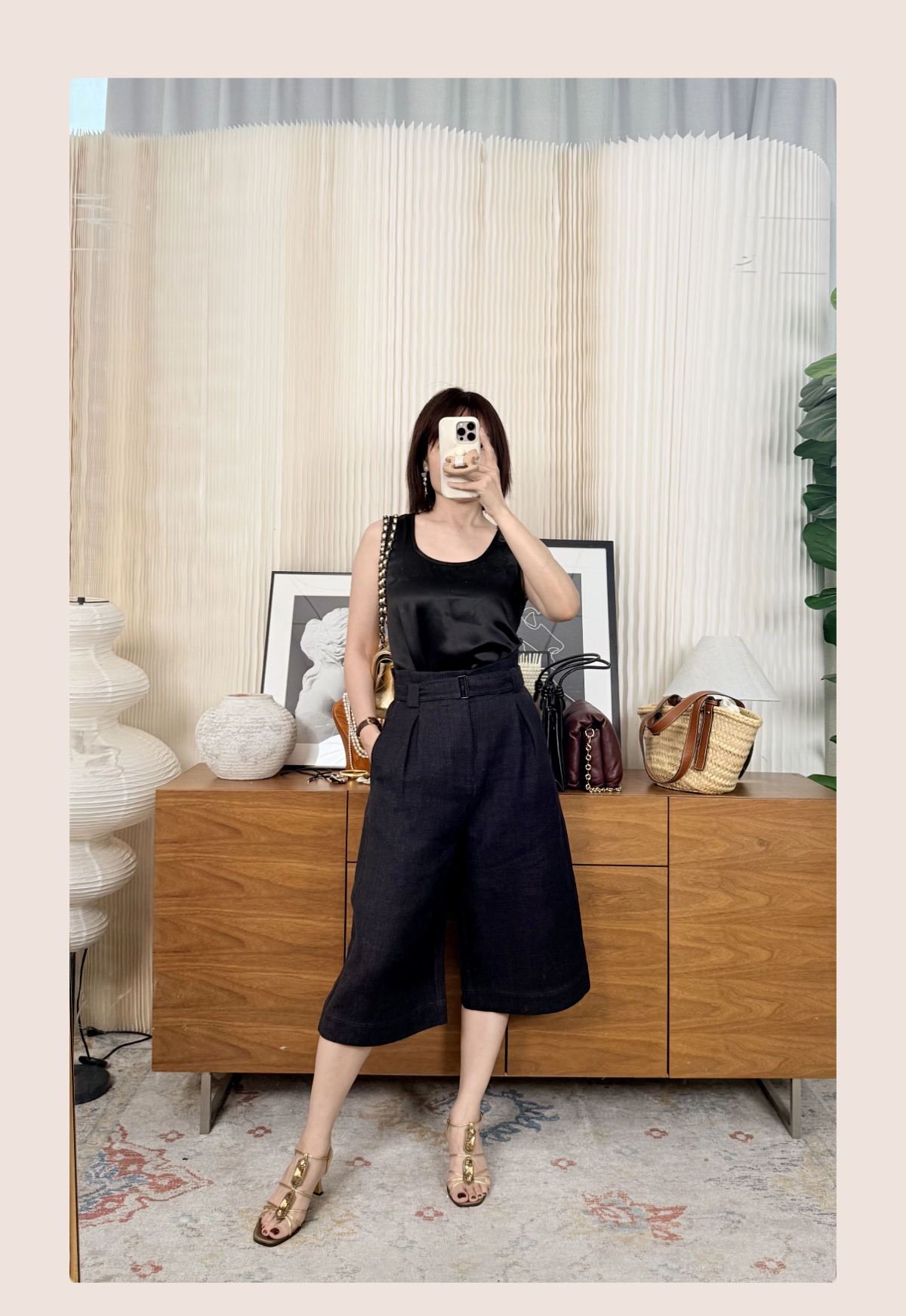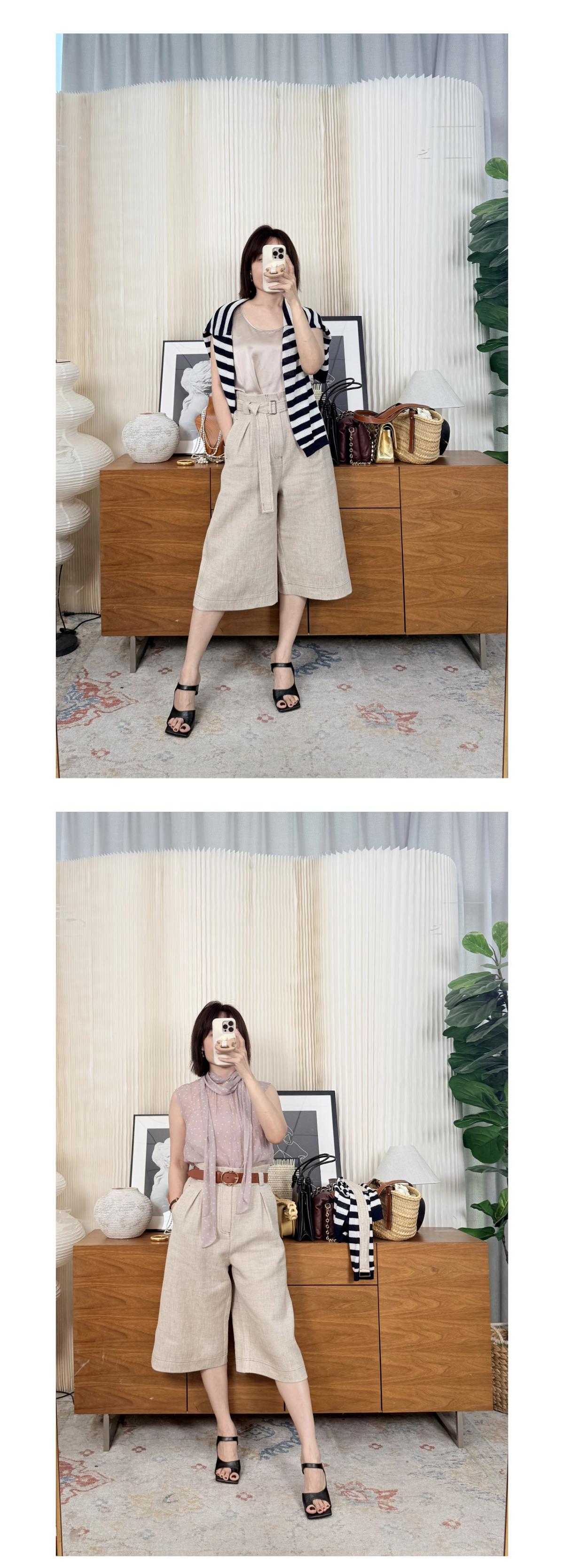 女爵士魅力 定纺60亚麻40棉混纺 高腰七分阔腿裤 抗皱挺括时髦款
