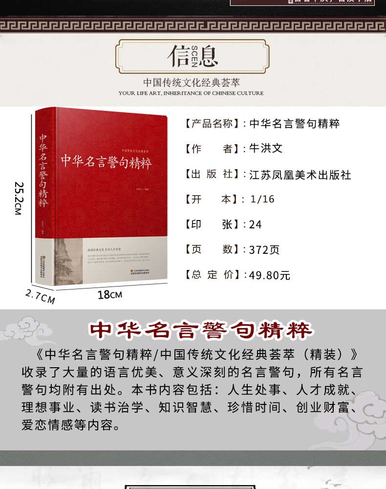 中华名言警句精粹 名人名言名句大全书小学生高中生励志经典语录中国名言警句大全书籍青少年课外阅读国学藏书正版
