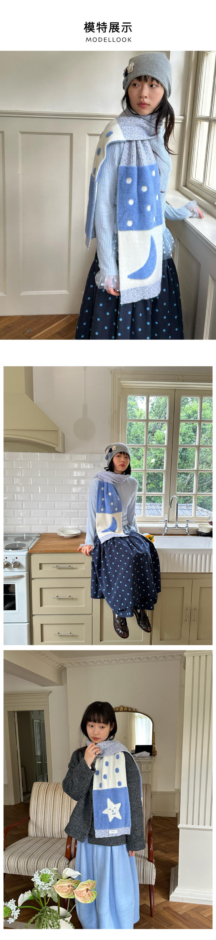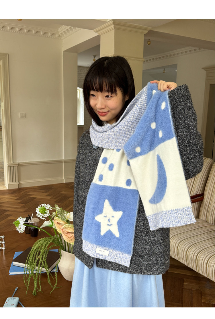 nothe Case布然/NC253225/「旷蓝星星」双面重工彩纱围巾