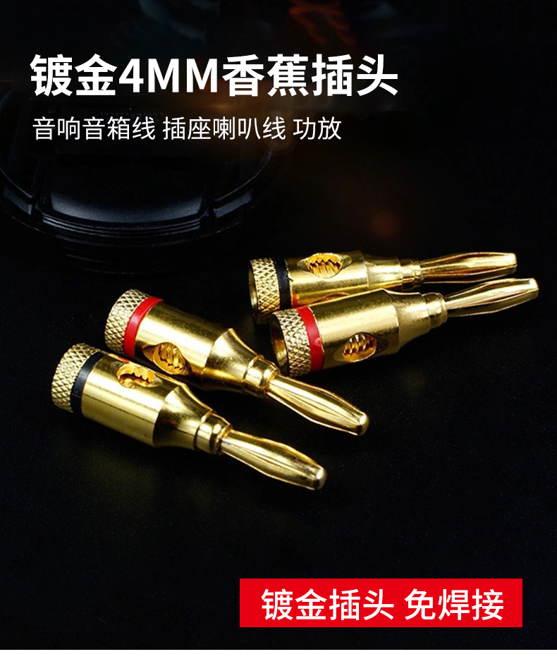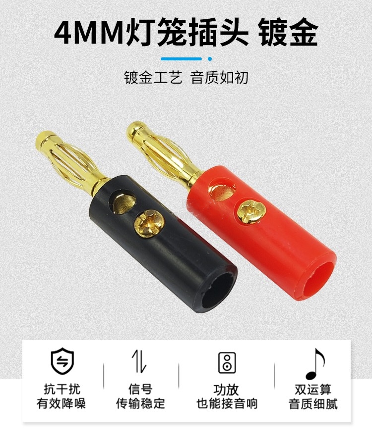 爆款 热销【镀金 4MM香蕉插头】灯笼电源万用表测试插头接线柱功放喇叭音箱插头香蕉头音箱响接线香蕉插头功放免焊灯笼头diy端子纯铜合金