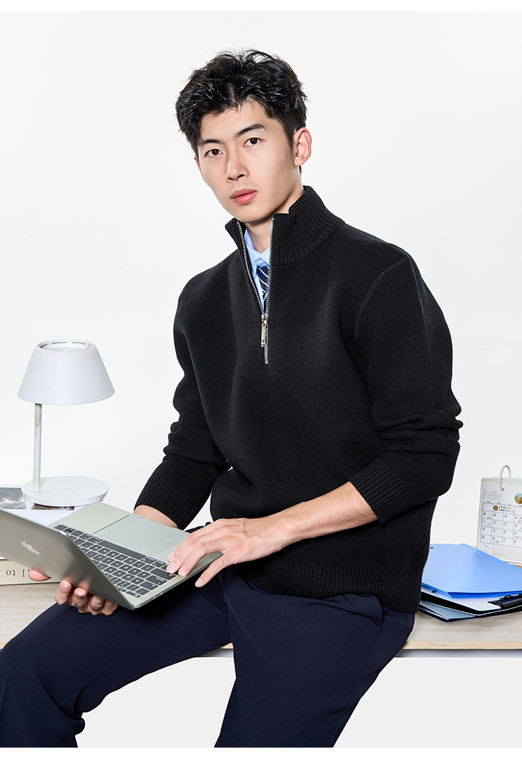 【实付满399送保温杯】【重磅粗针绵羊毛保暖立领毛衣】半拉链休闲毛衣毛衫通勤打底长袖上衣MT503