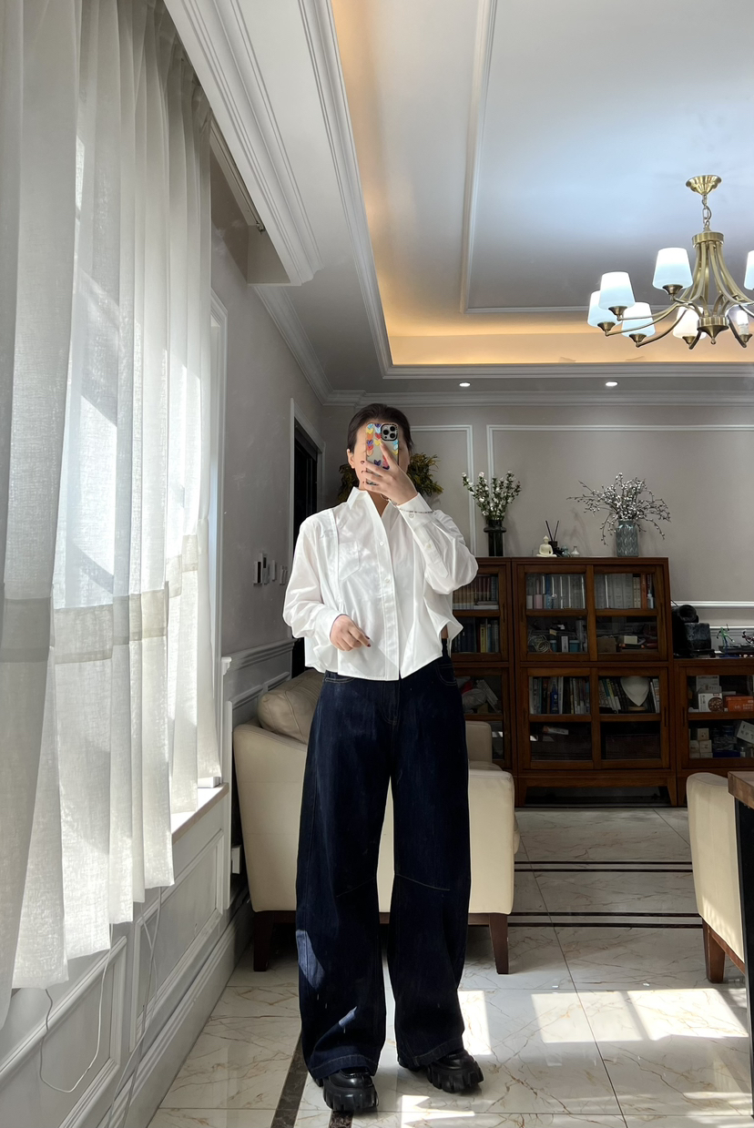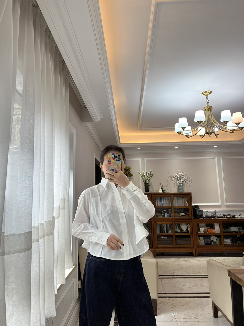 226-2 sac 解构式拼接 宽松短款 白衬衫 我穿2如图合身 穿3宽松大气