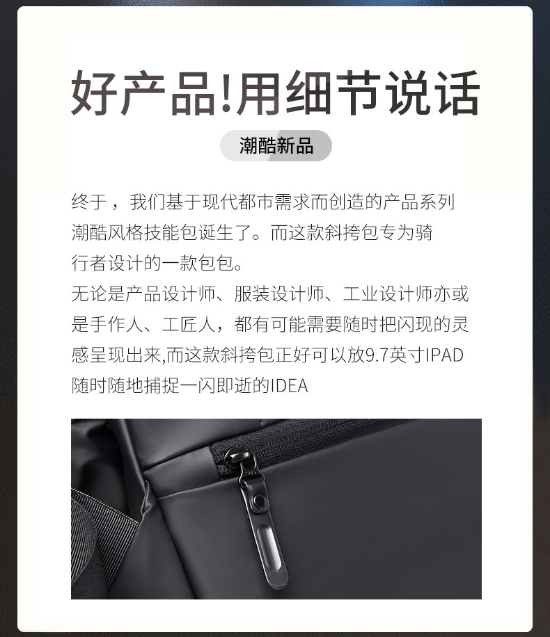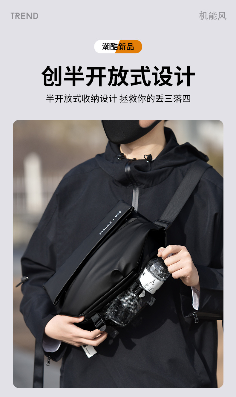 【男士斜挎包】磁吸扣胸包 男款邮差包男骑行机车背包 运动男生单肩包潮