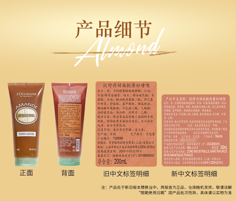 欧舒丹(L'OCCITANE)甜扁桃磨砂沐浴啫喱200ml A-4963