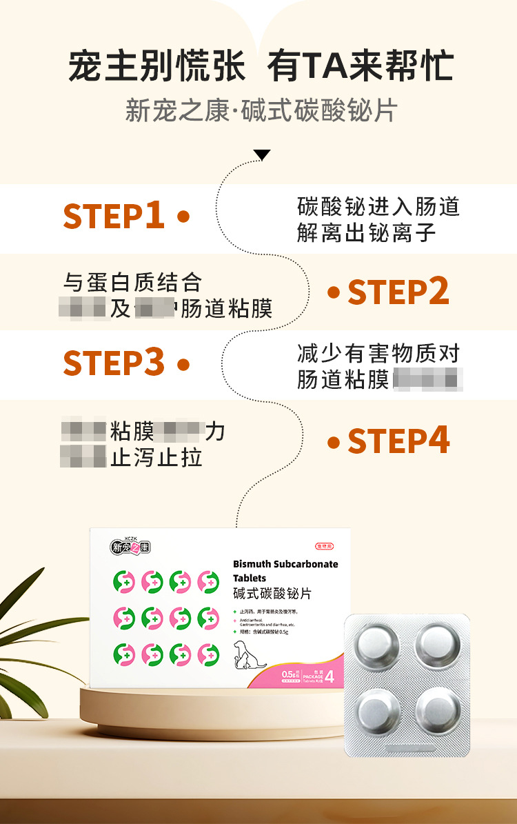 新宠之康碱式碳酸铋片4片盒装 细小、肠炎、冠状病毒引起的腹泻