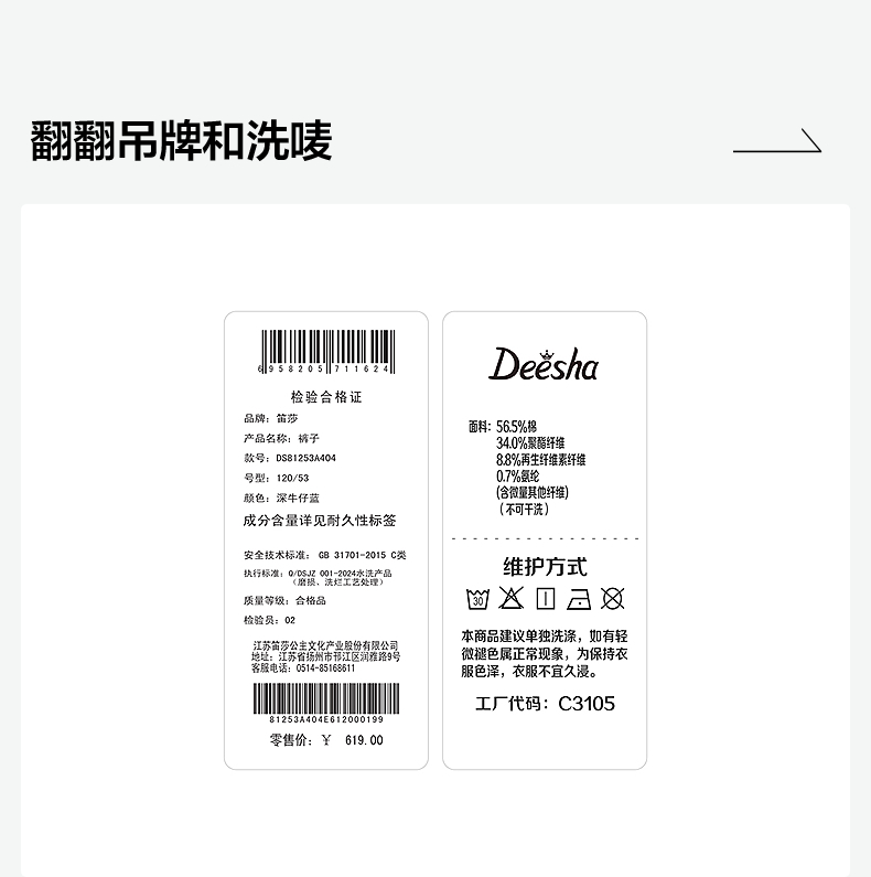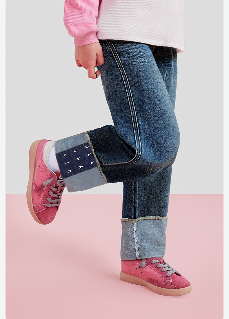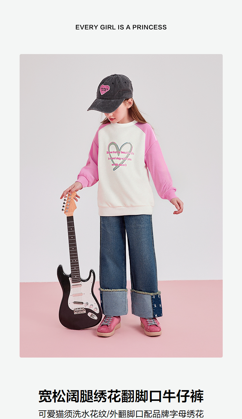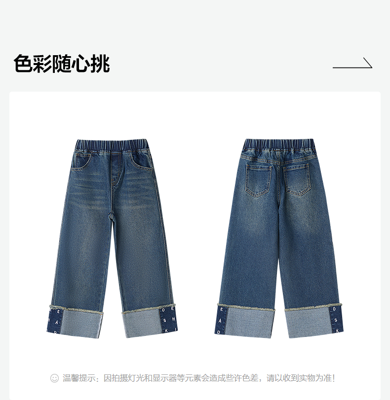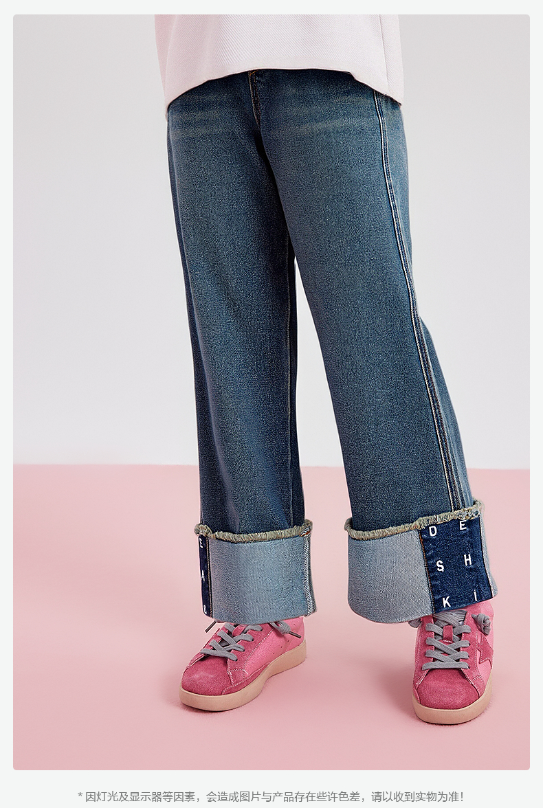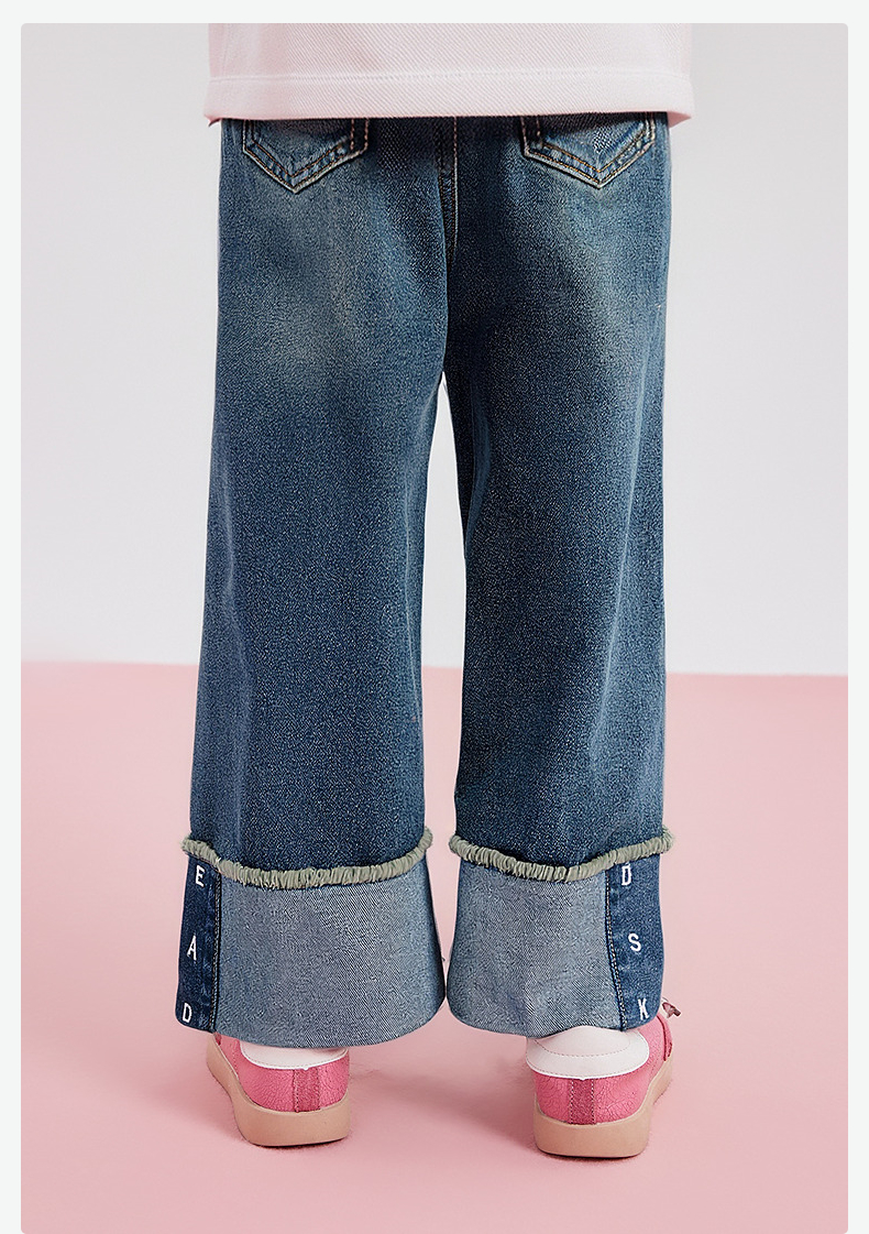 笛莎Deesha 童装女童裤子2025秋新款女童宽松阔腿绣花翻脚口牛仔裤