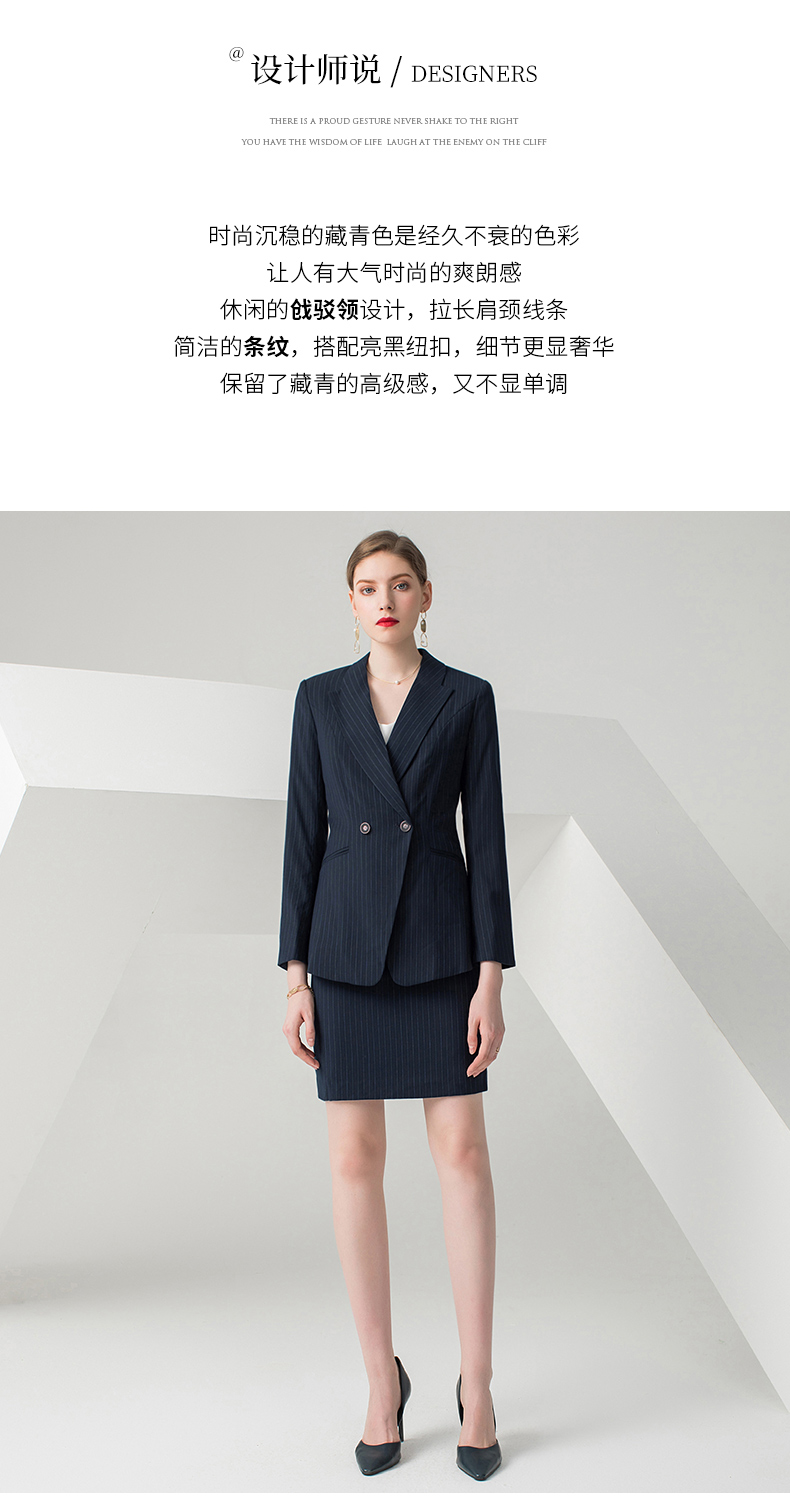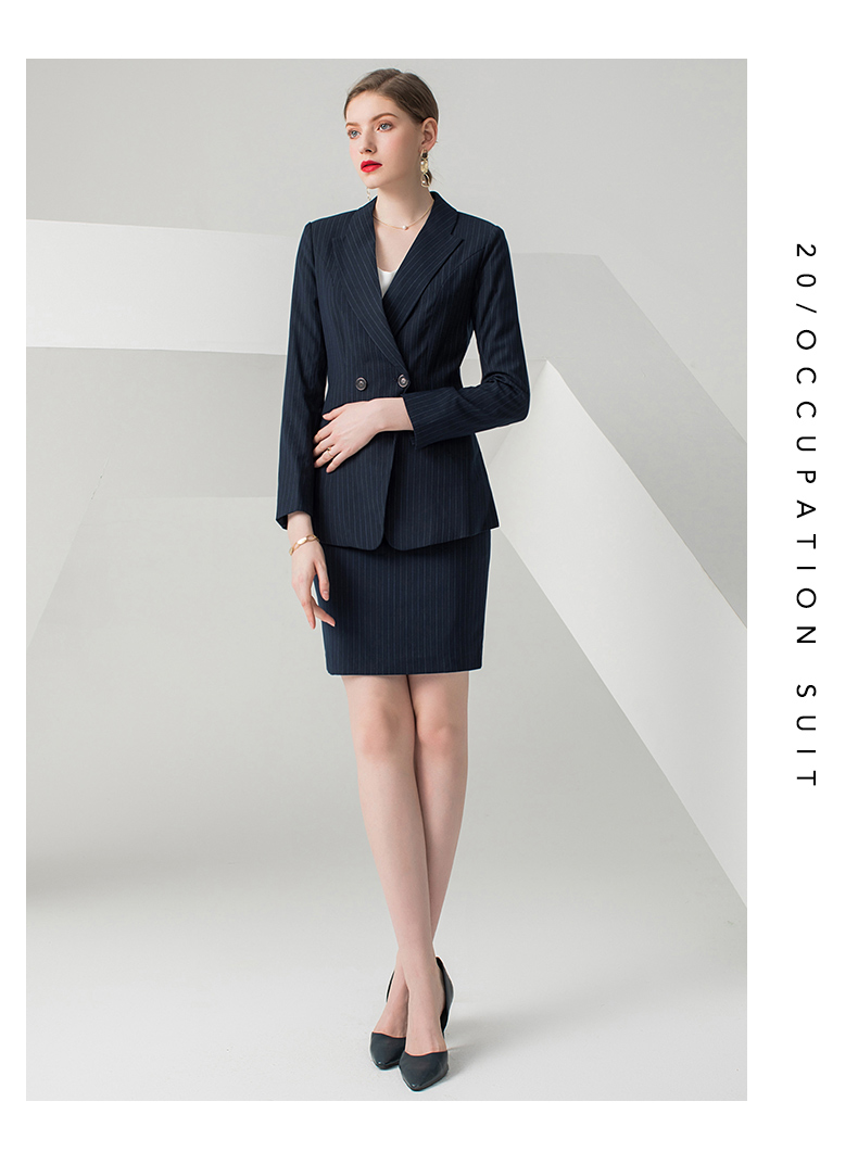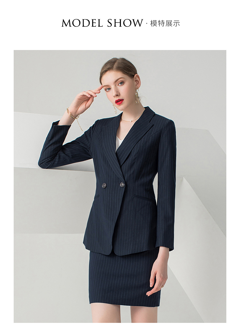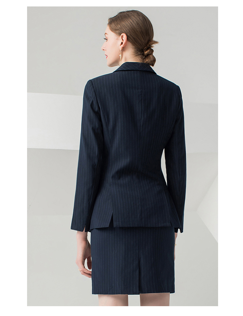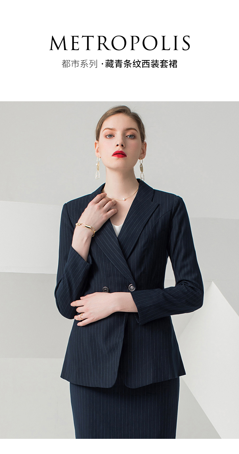 IWY/藏青色条纹长袖西装半裙套装CS10345