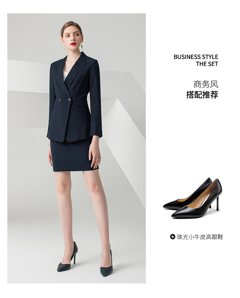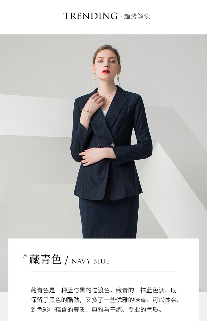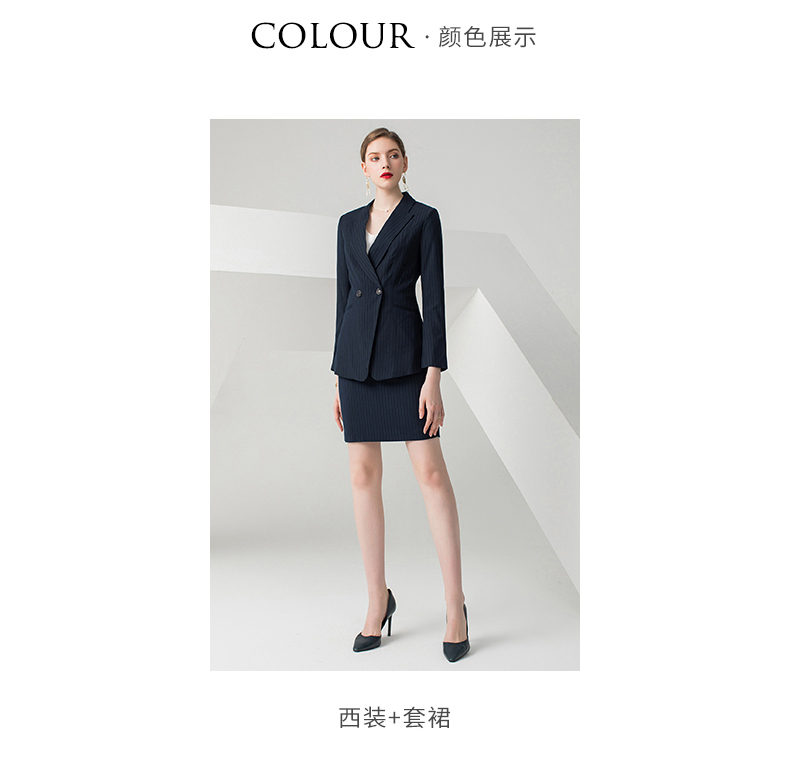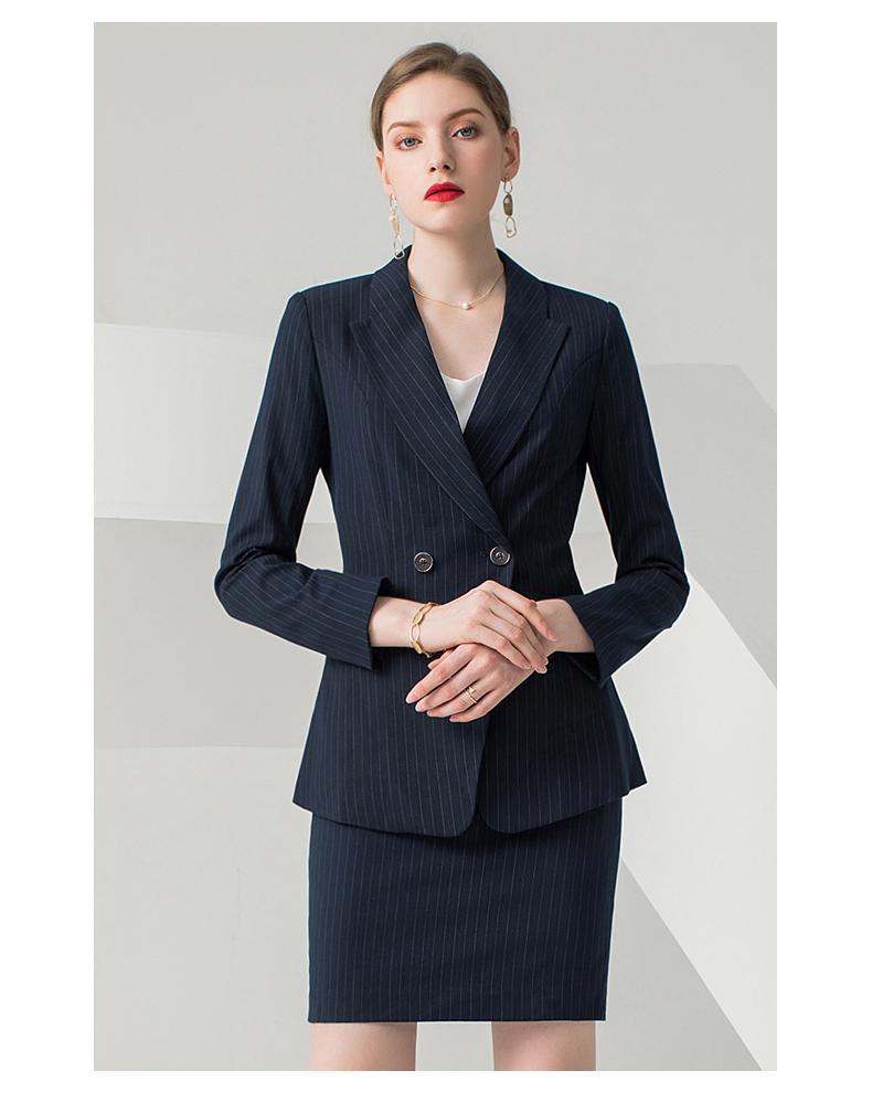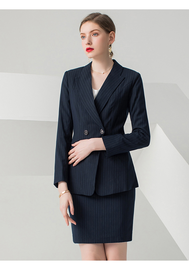 IWY/藏青色条纹长袖西装半裙套装CS10345