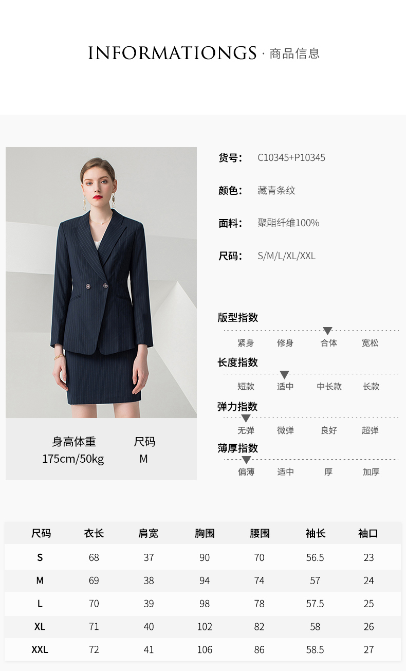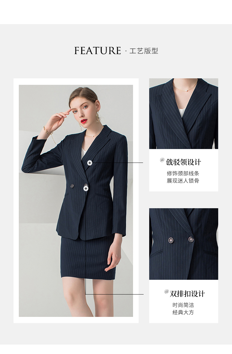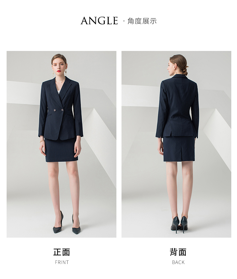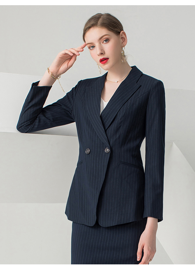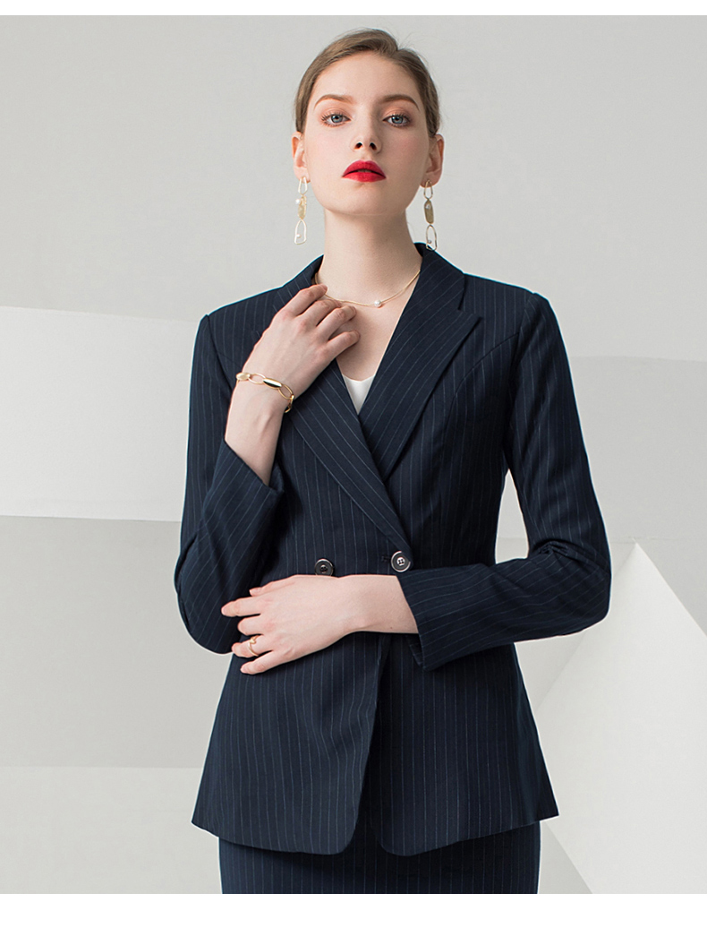 IWY/藏青色条纹长袖西装半裙套装CS10345