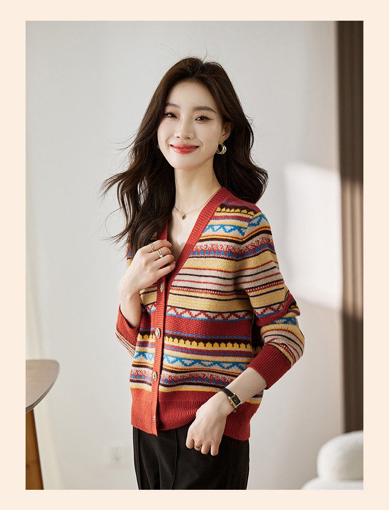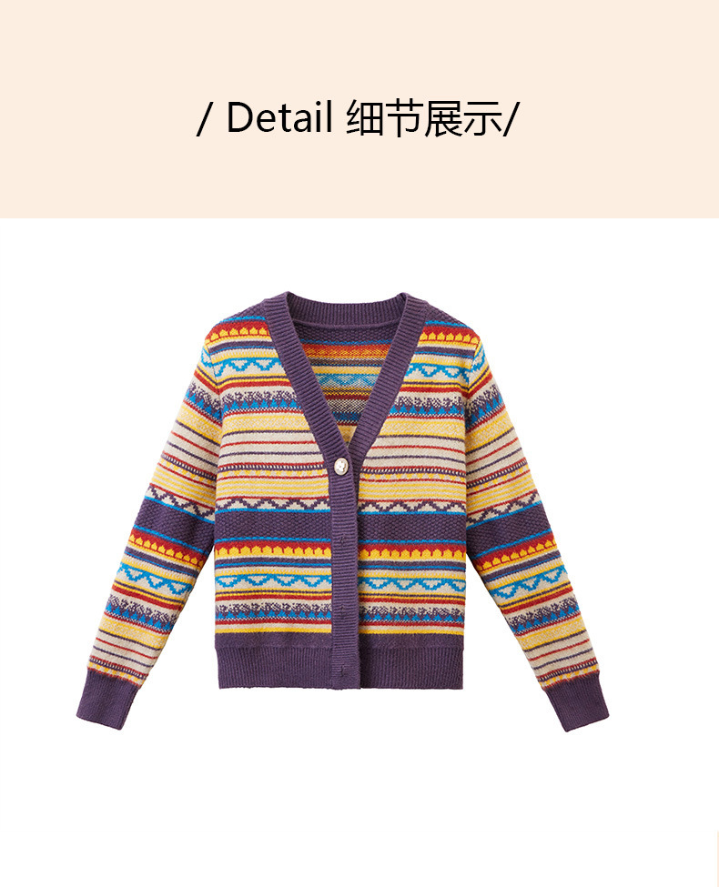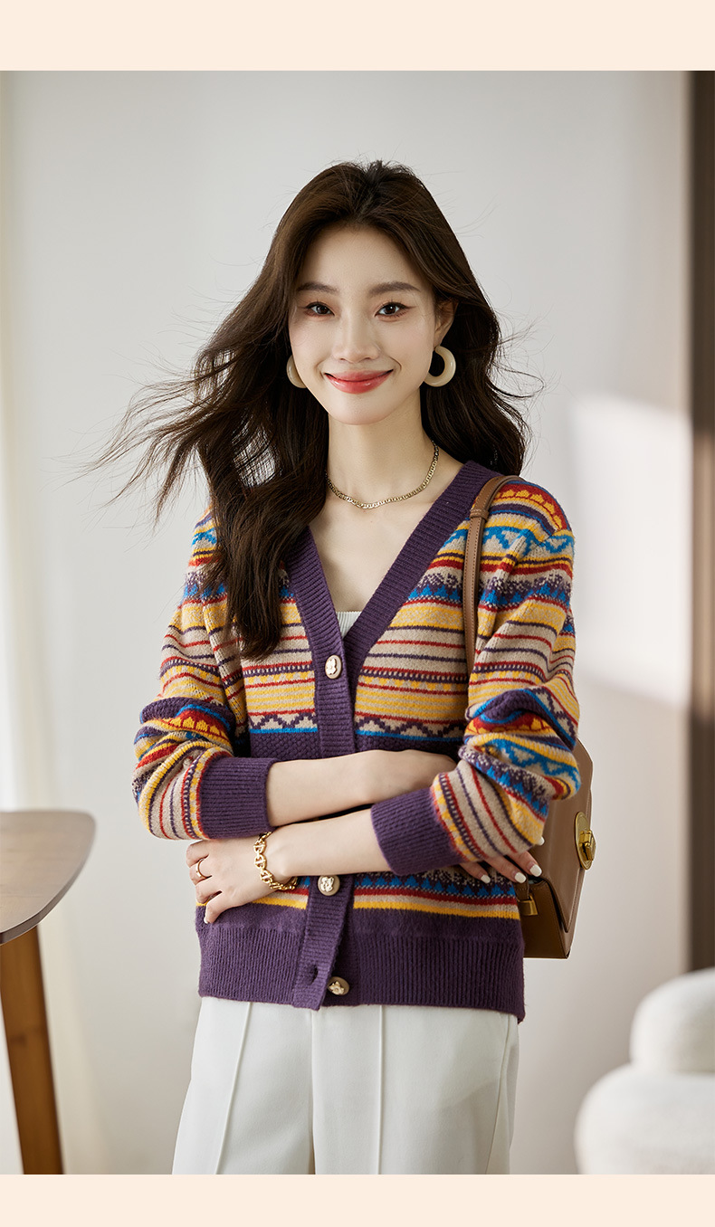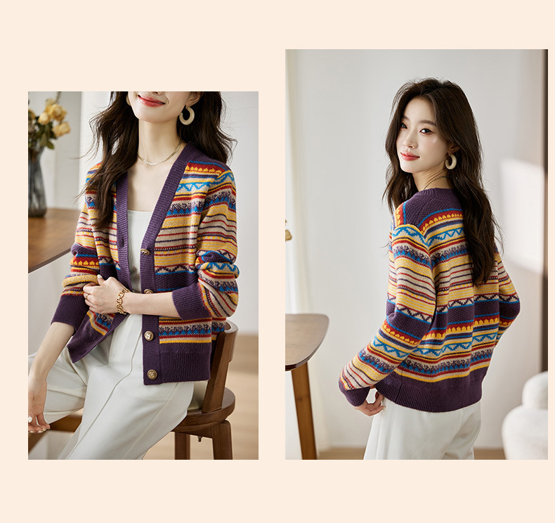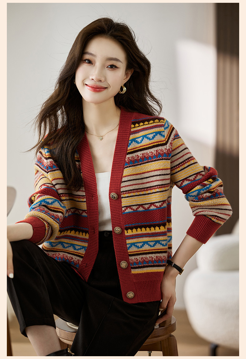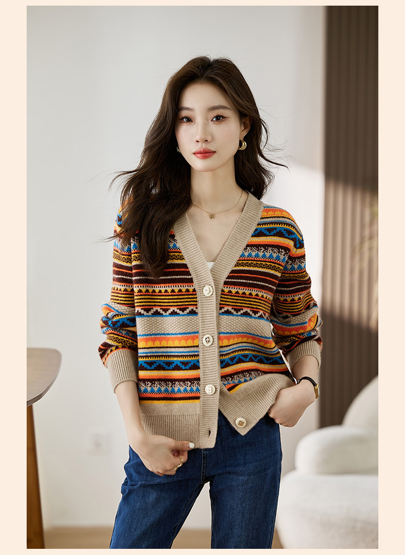 条纹V领针织开衫,春秋季新款时尚宽松百搭洋气外穿外搭上衣CC-108-92037