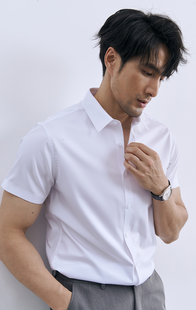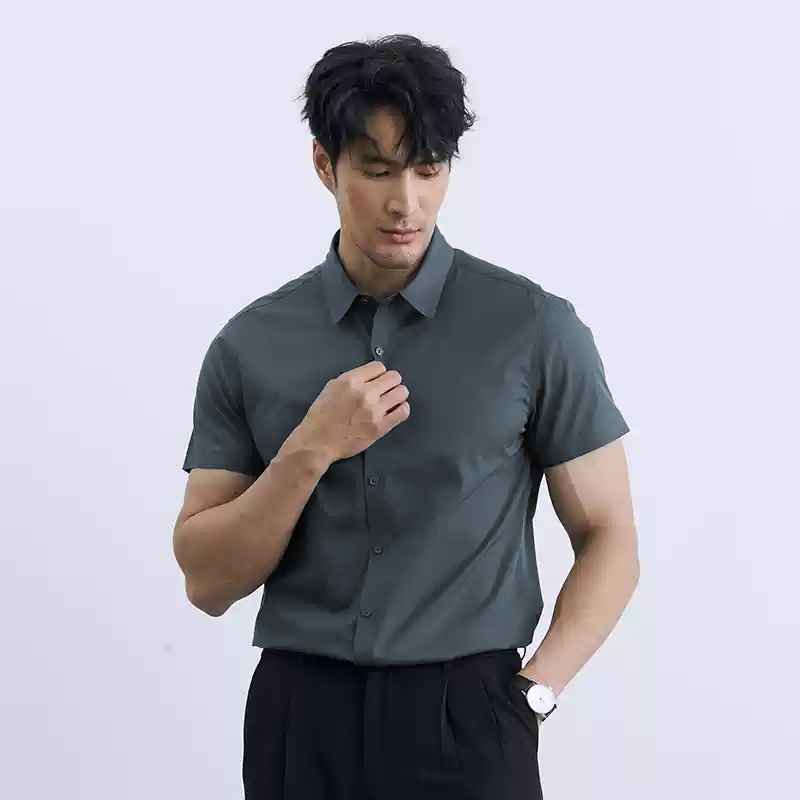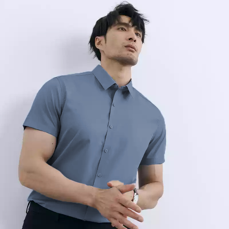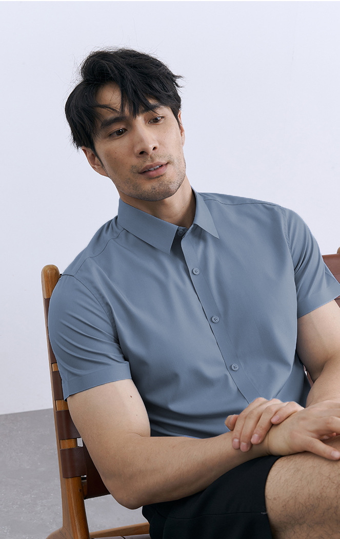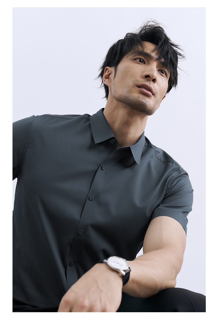 SIMU轻奢夏季免烫衬衫 短袖款商务衬衫,休闲防晒短衬