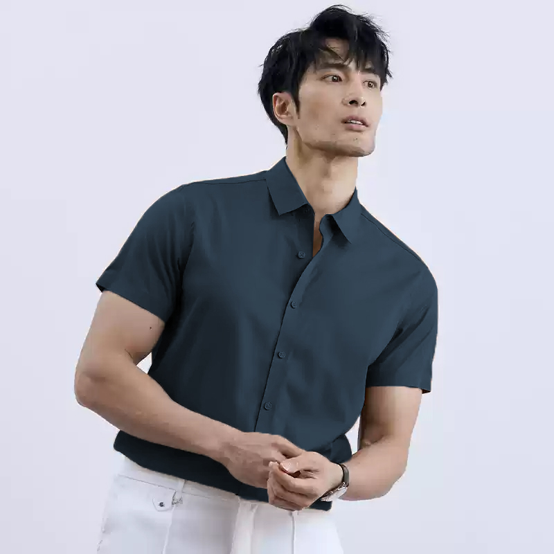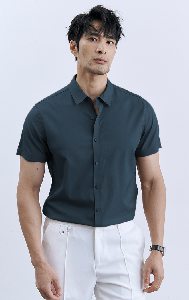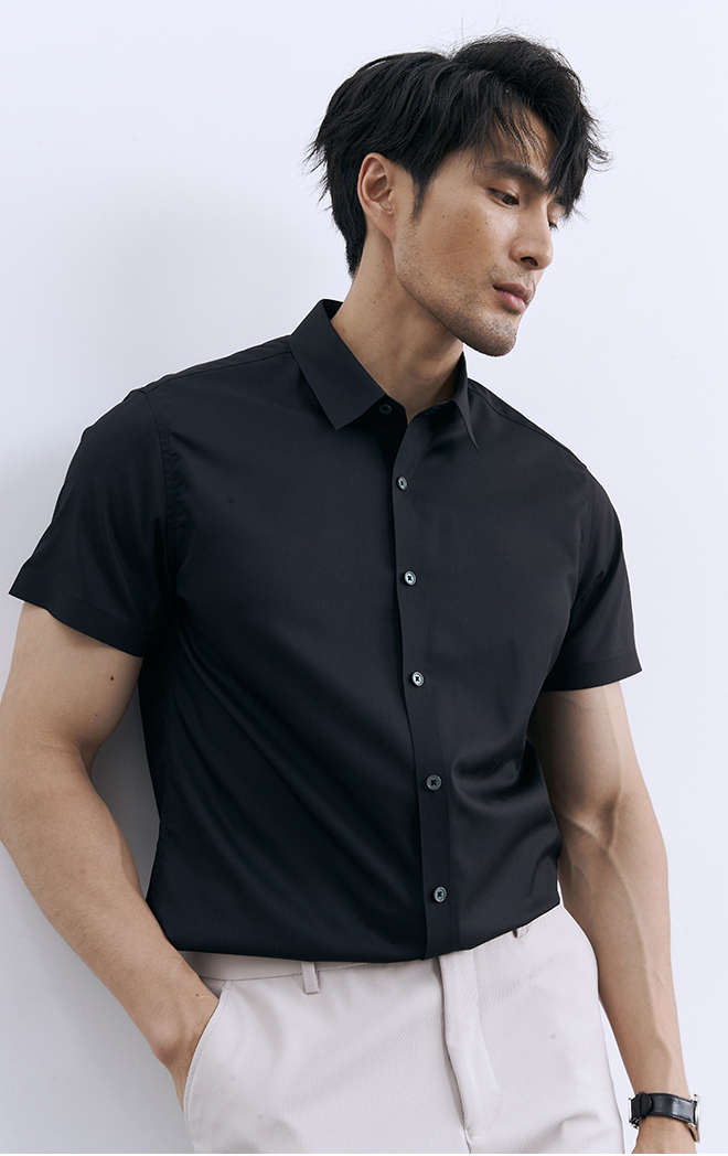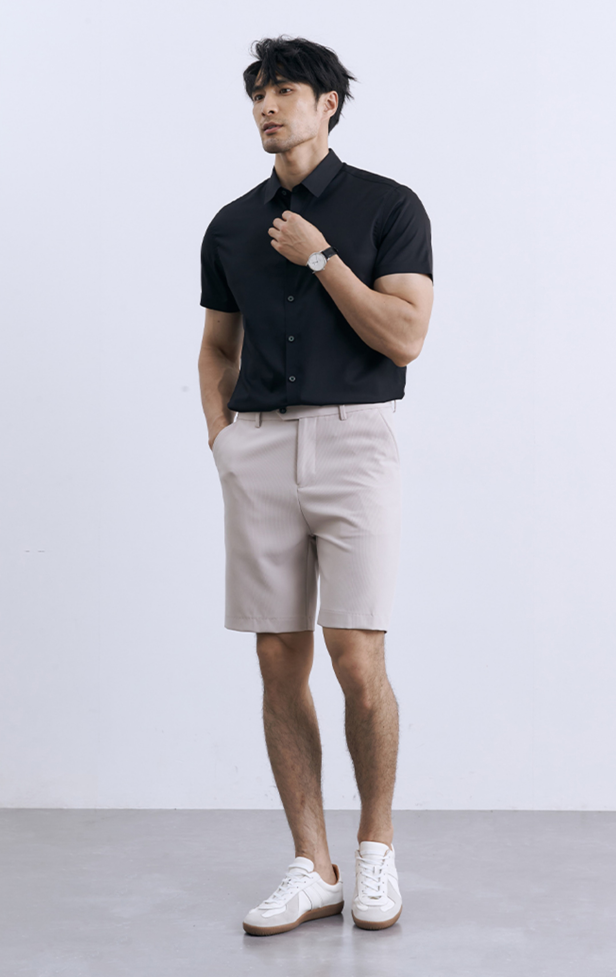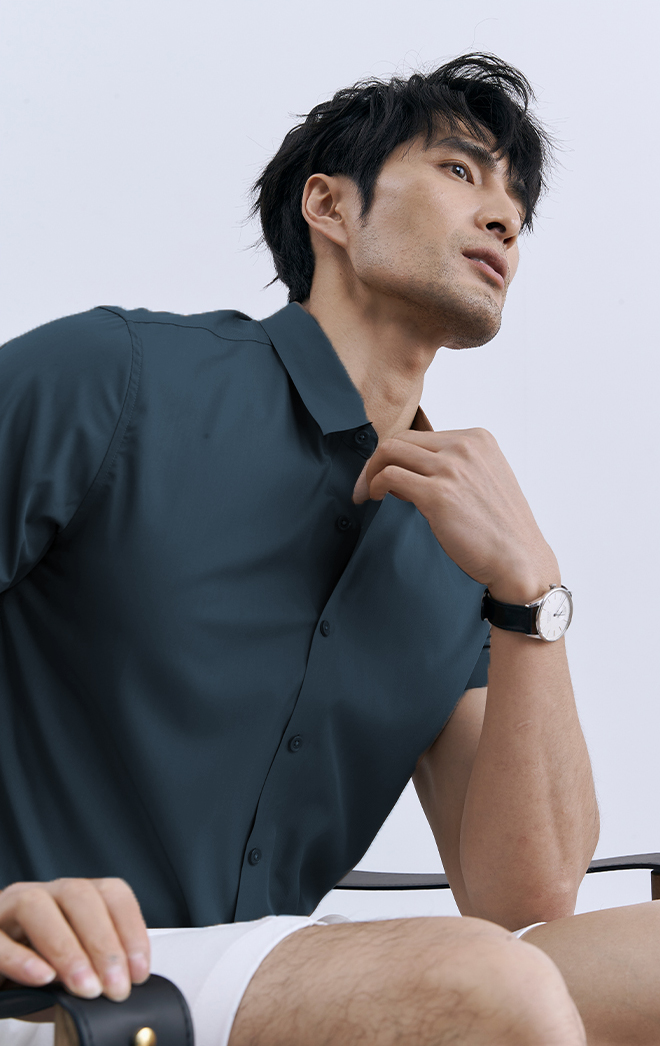 SIMU轻奢夏季免烫衬衫 短袖款商务衬衫,休闲防晒短衬