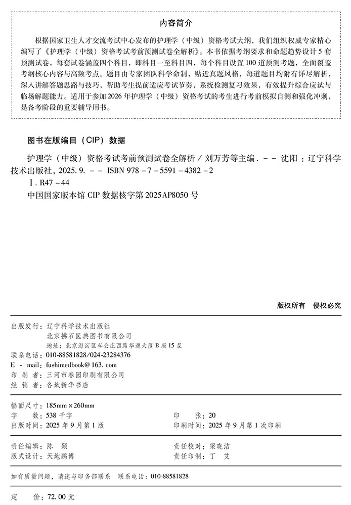 2026护理学(中级)资格考试考前预测试卷全解析 全国初中级卫生专业技术资格考试辅导丛书 刘万芳 赵诺 主编 辽宁科学技术出版社