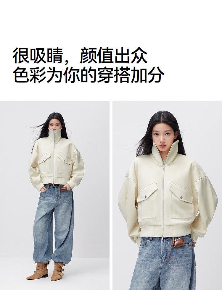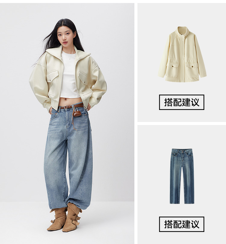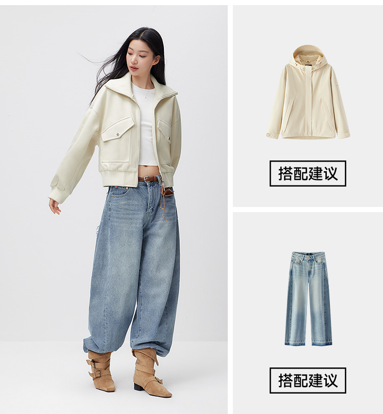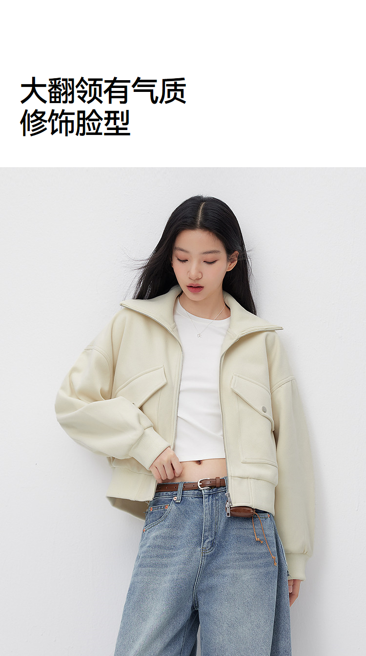 森马外套女春季落肩宽松大翻领夹棉夹克盐系慵懒潮酷高街时尚上衣