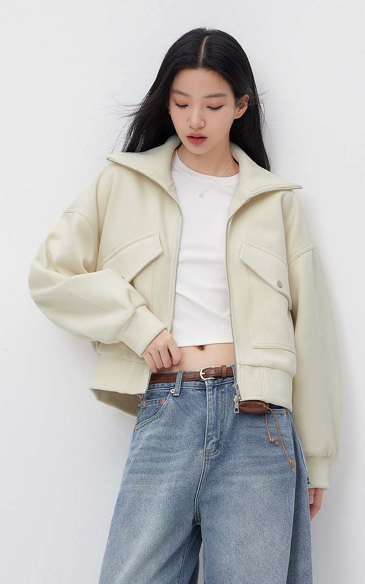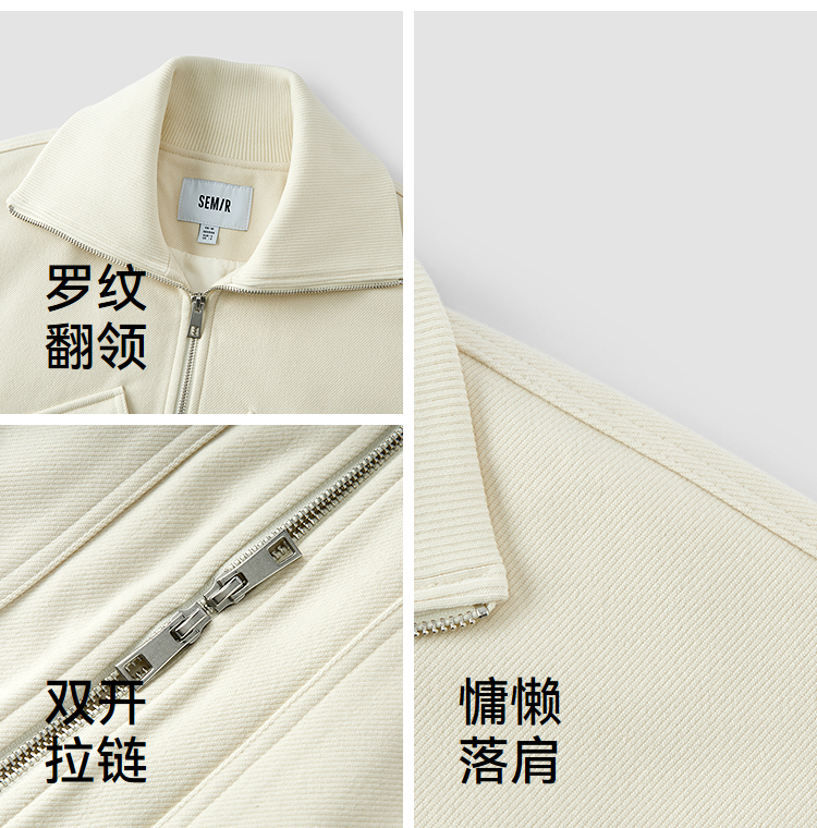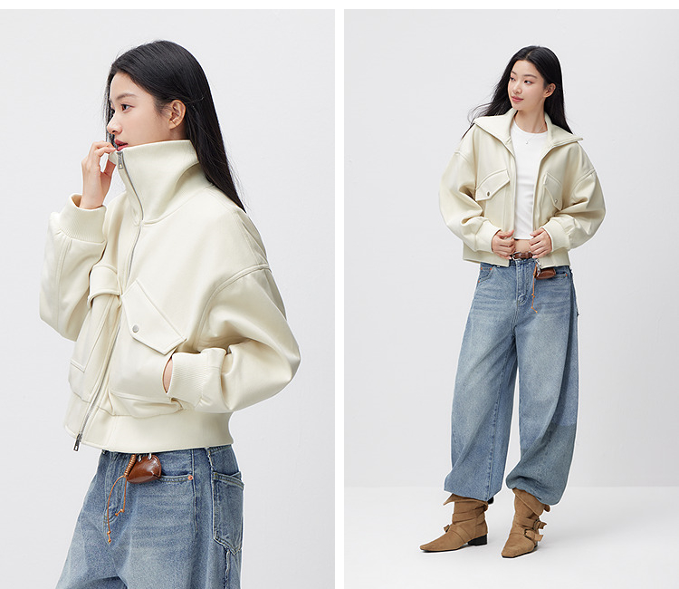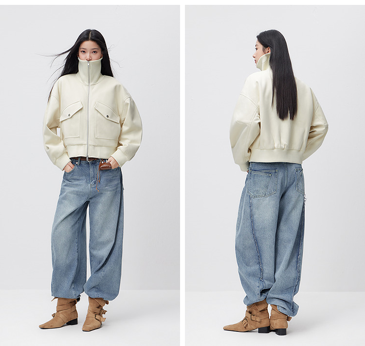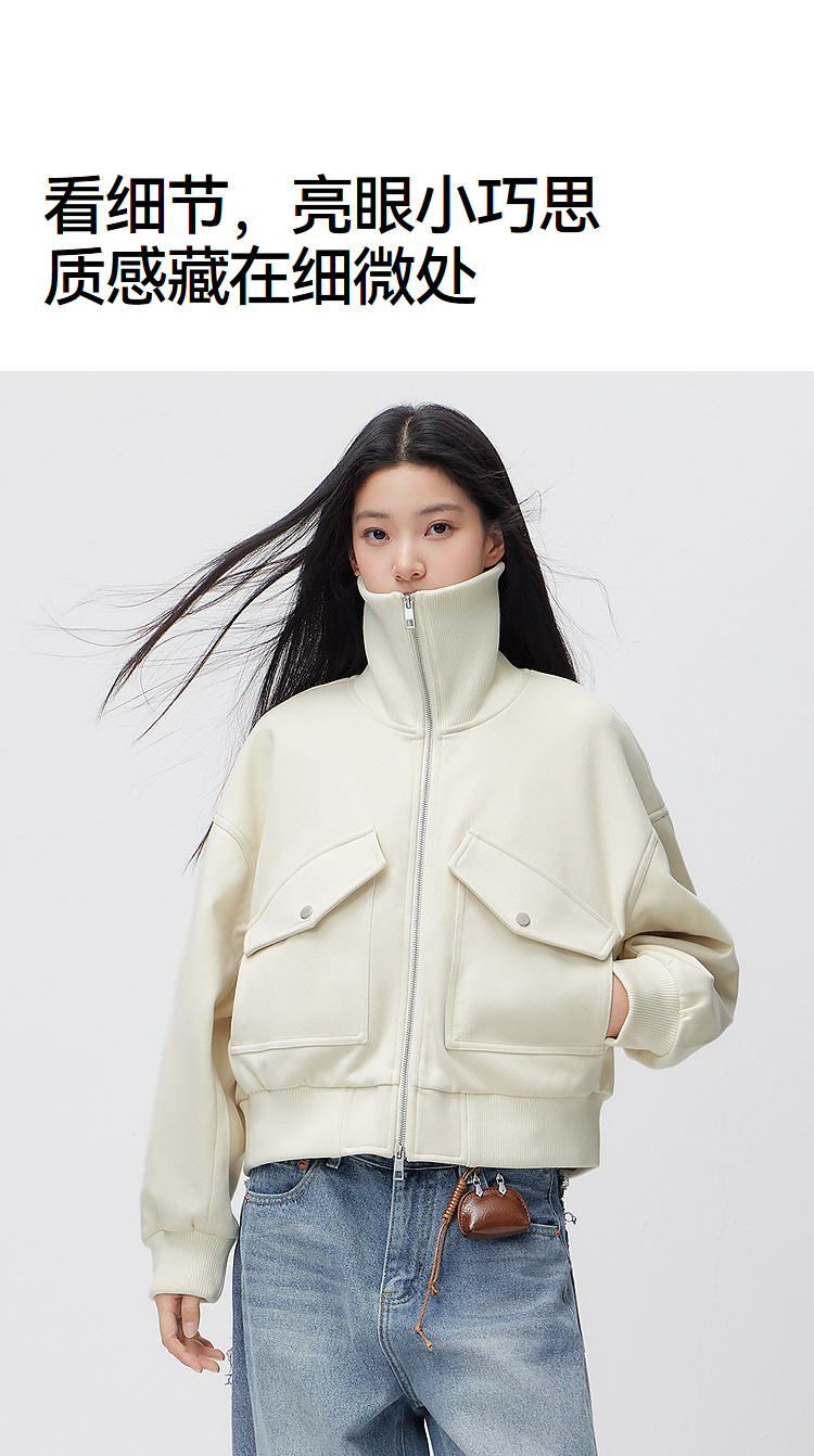 森马外套女春季落肩宽松大翻领夹棉夹克盐系慵懒潮酷高街时尚上衣