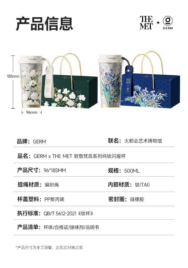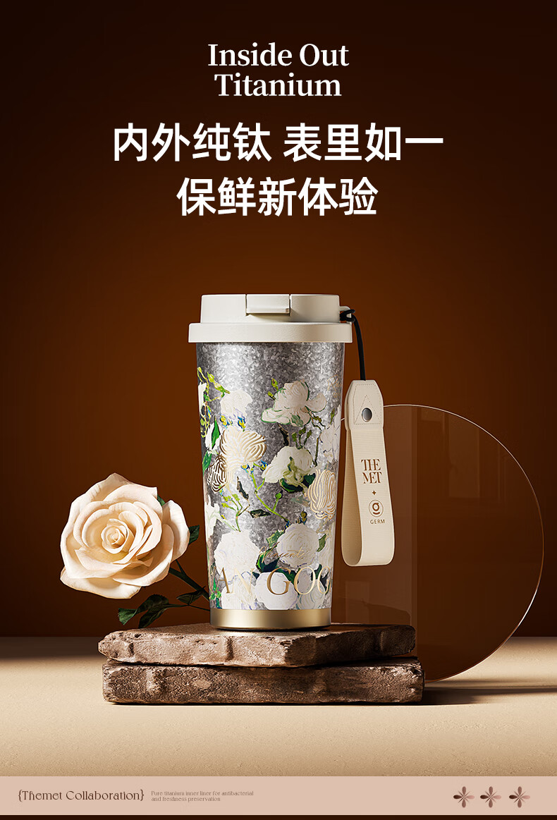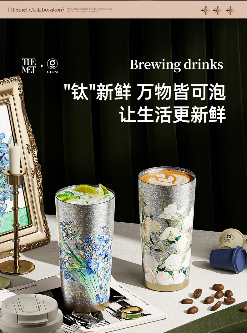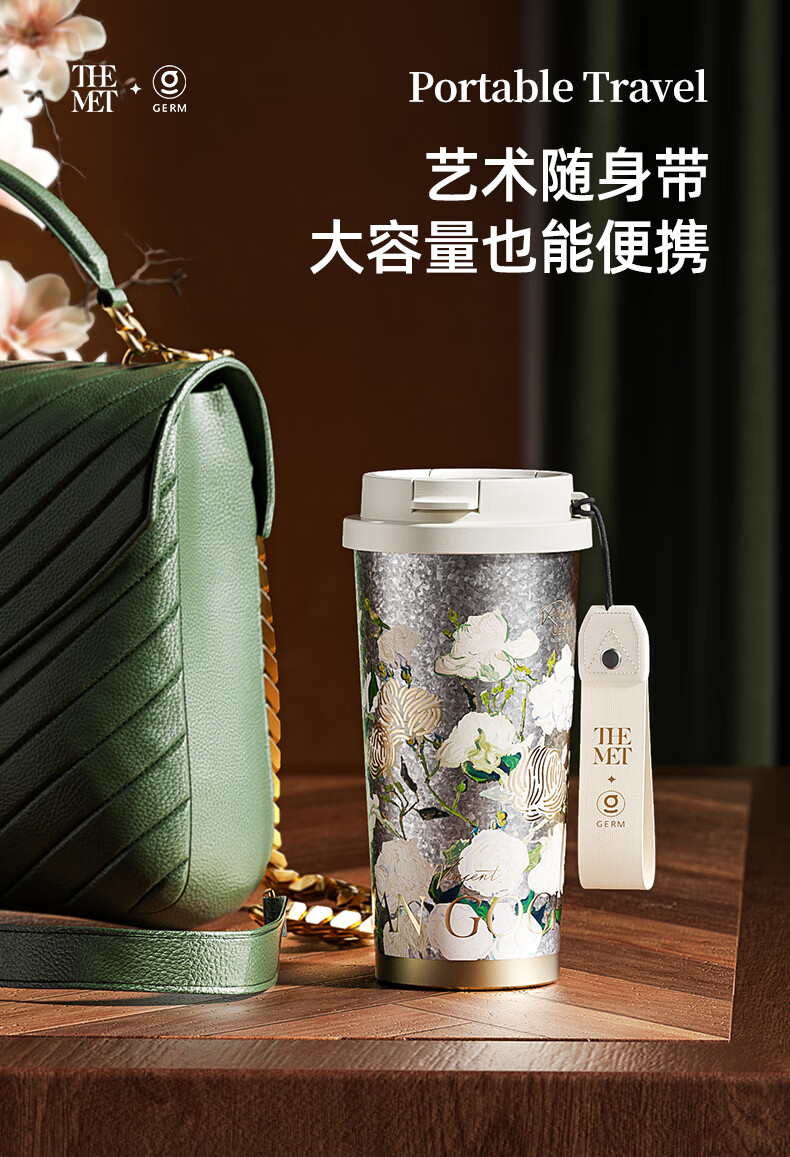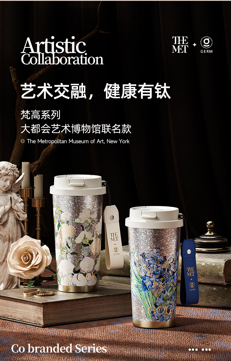 格沵(germ)纯钛保温杯大都会梵高联名水杯高颜值礼物咖啡杯吸管杯双饮杯子 玫瑰【礼盒】 500ml/鸢尾花【礼盒】 500ml