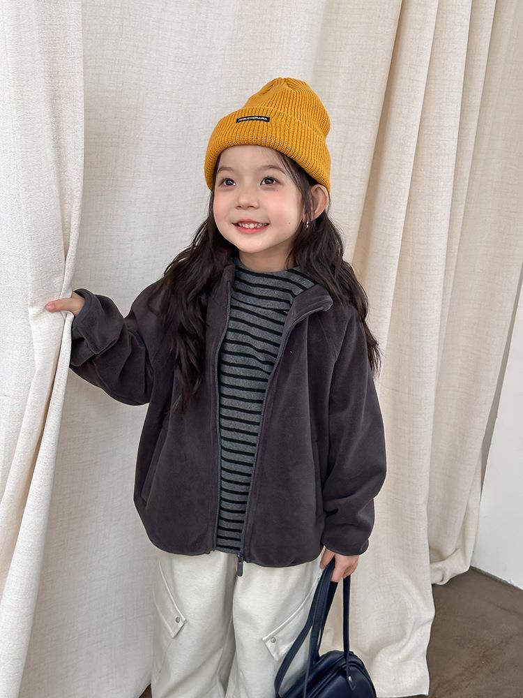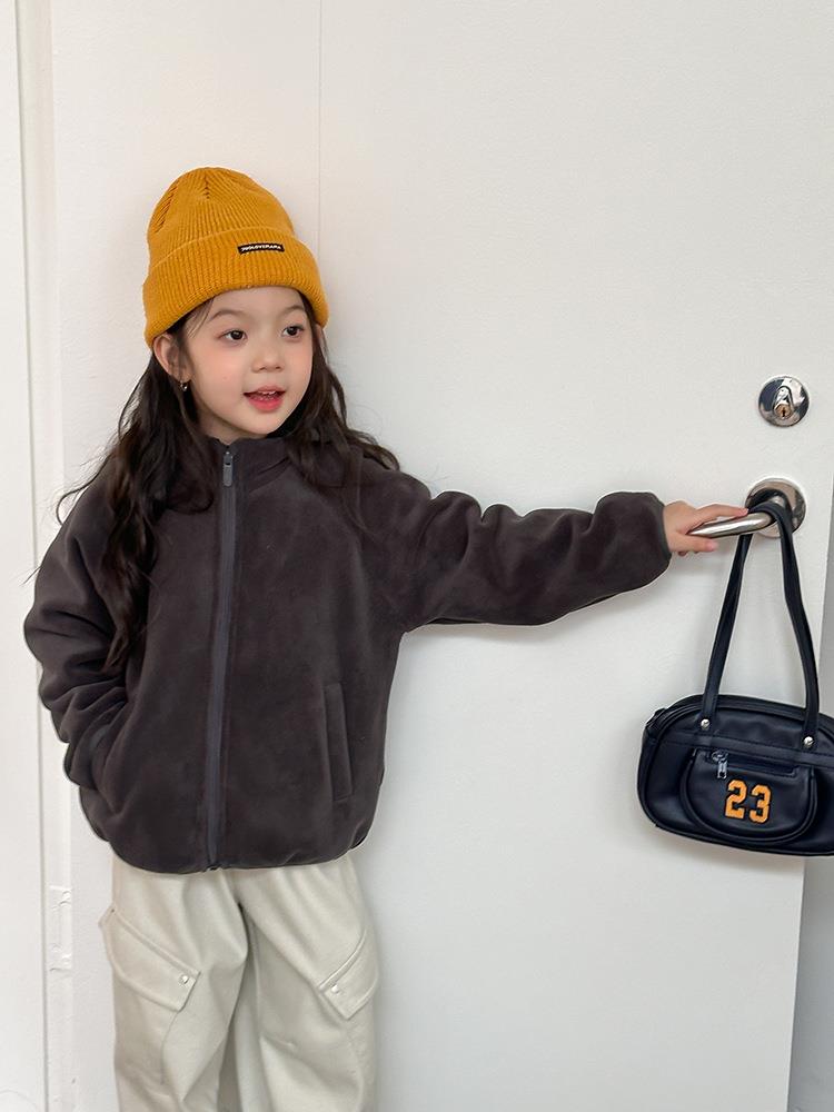 艾摩贝贝男女童内搭外穿防风保暖棉衣奥粒绒对复加厚双面毛绒外套