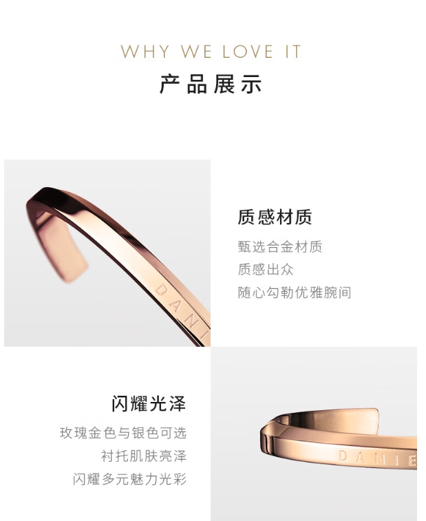 丹尼尔惠灵顿(DanielWellington)DW手镯男首饰玫瑰金手环大号