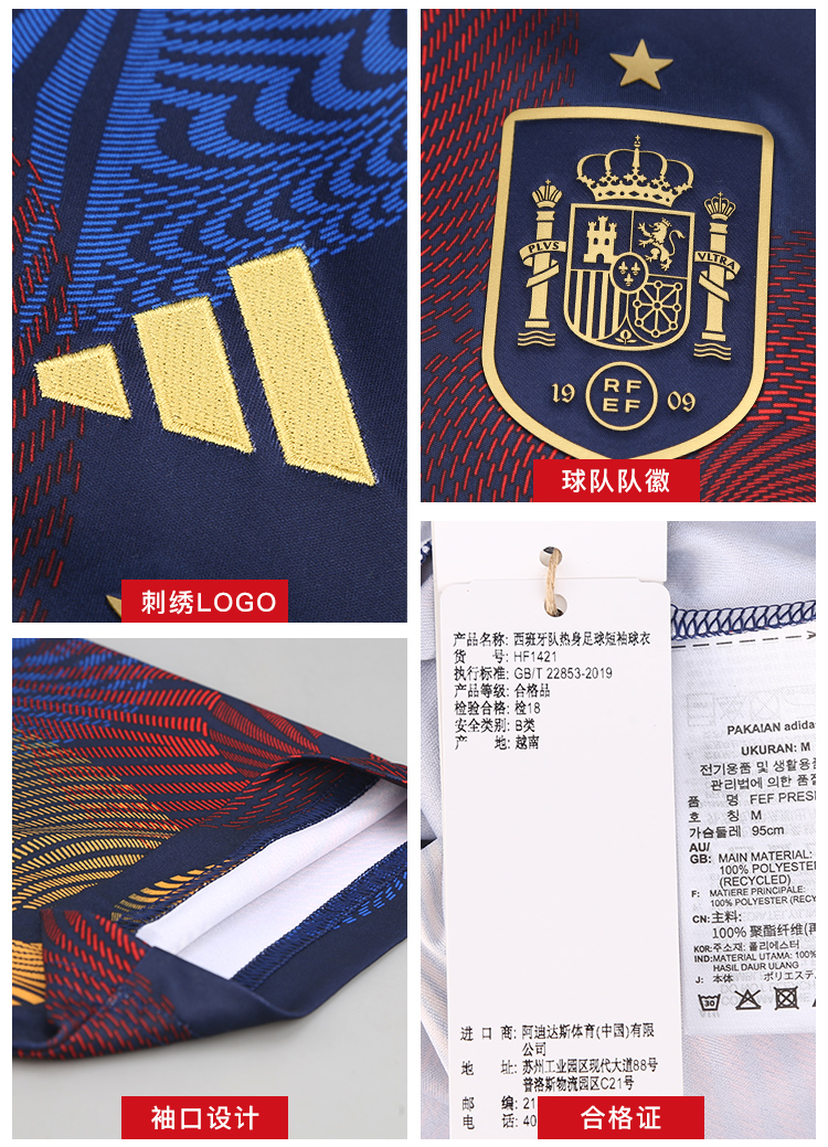ADIDAS/阿迪达斯FEF PRESHI西班牙队热身足球短袖球衣HF1421