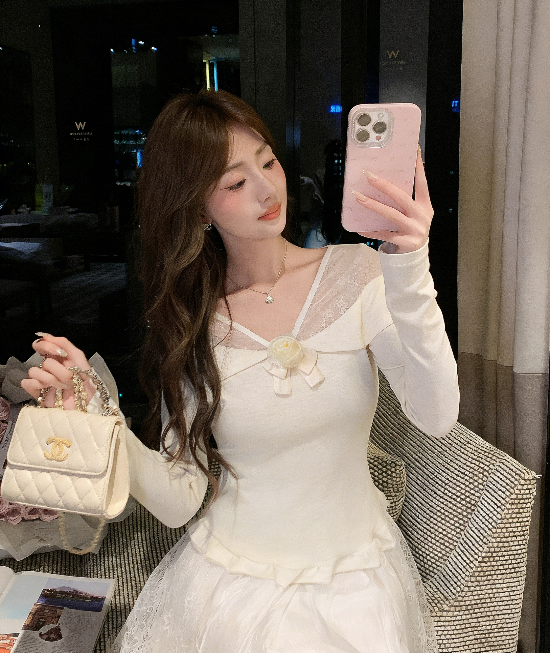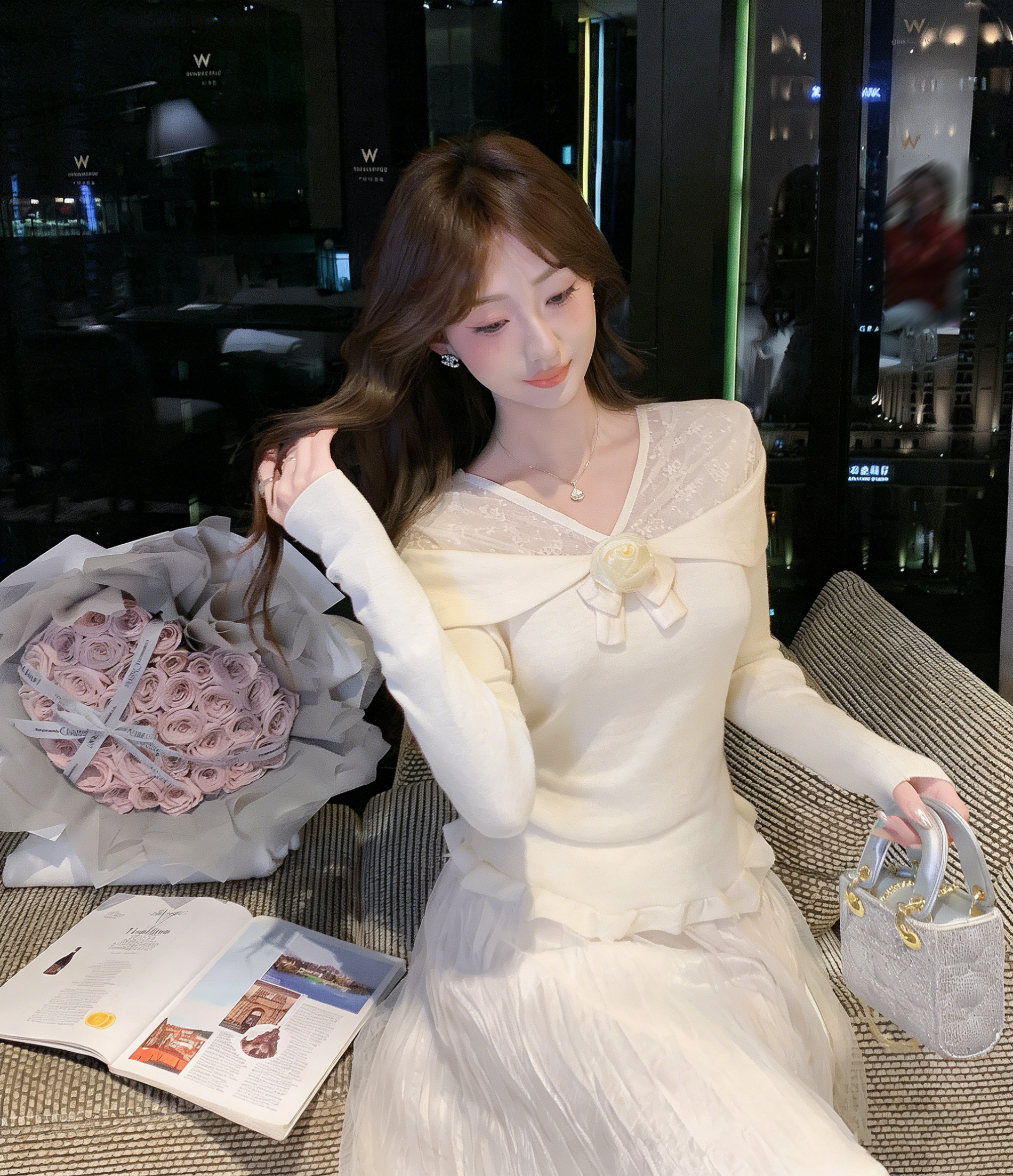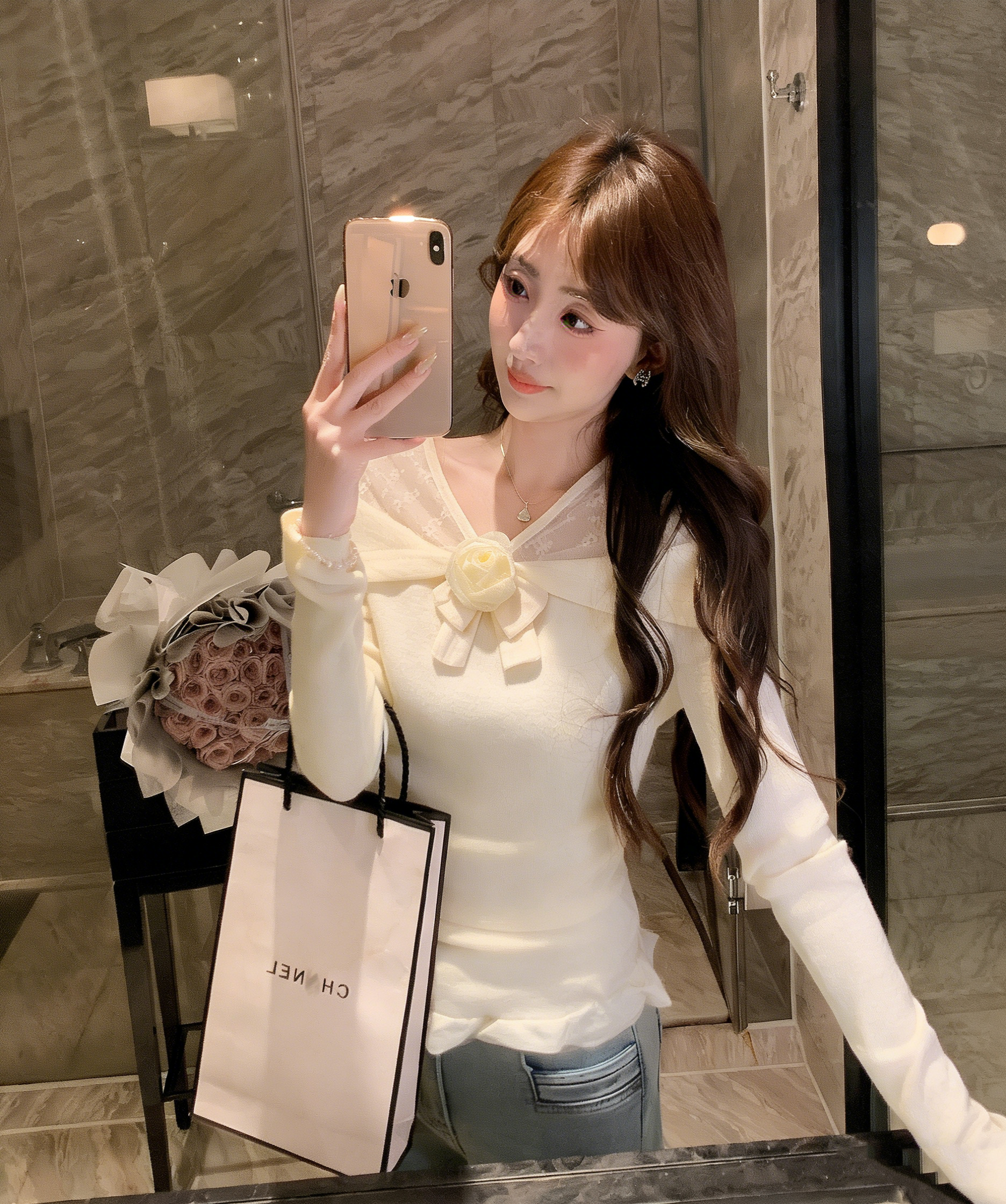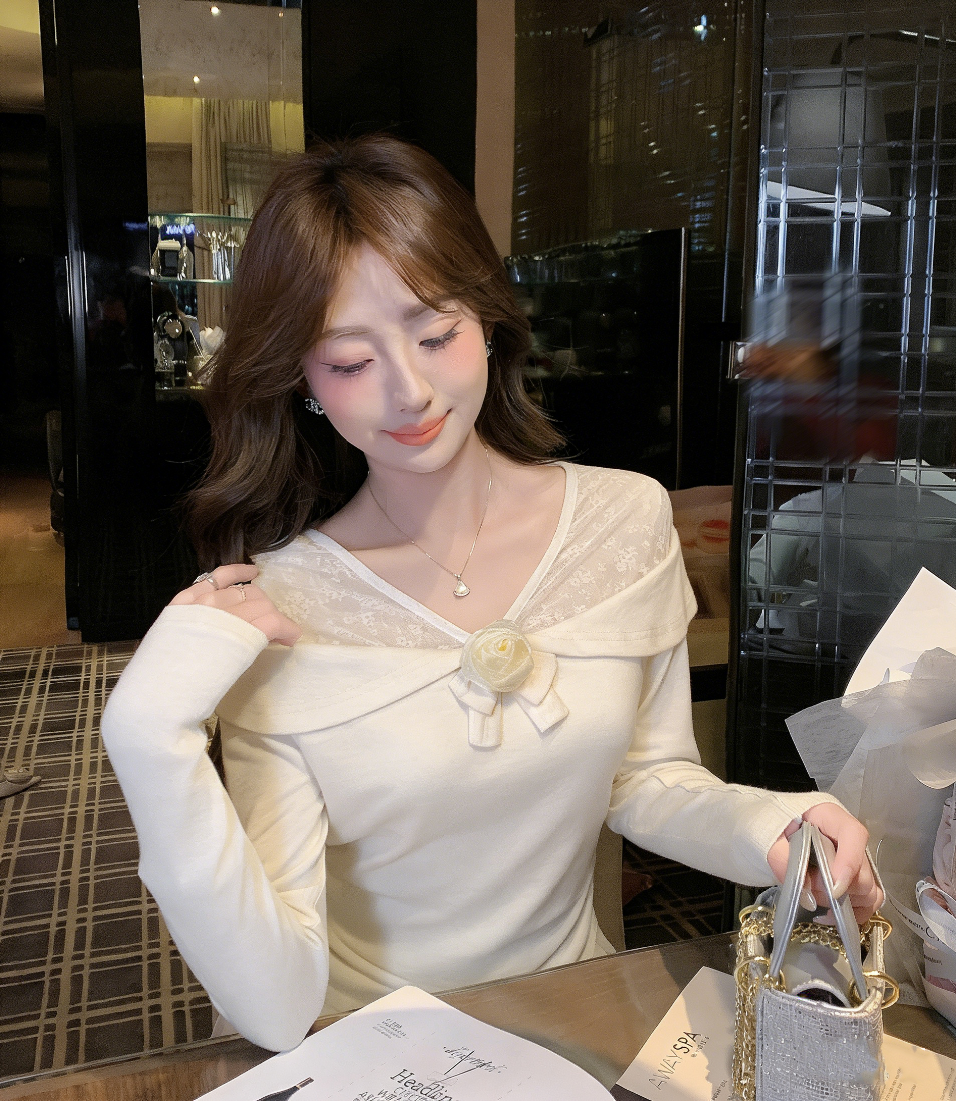 张心子【橘子气泡水】小性感露肩显白气质立体花上衣 U2505039