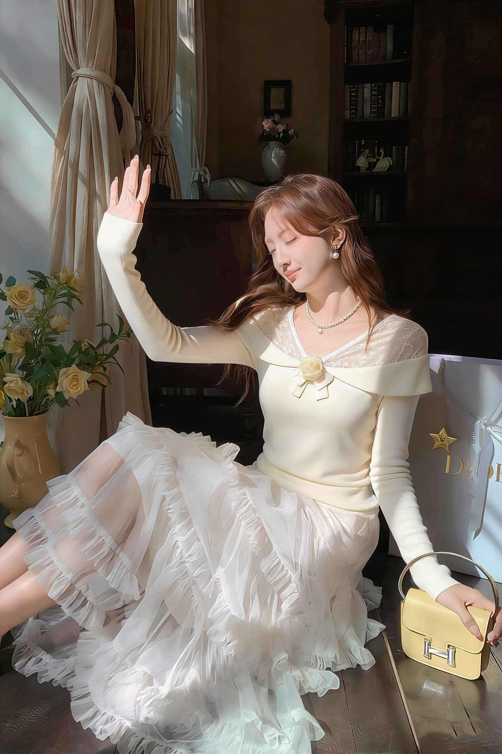 张心子【心动旋律】高腰遮胯显瘦小香风半身裙 U2601026