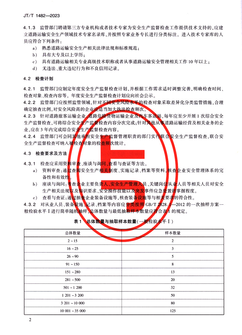书名:道路运输安全监督检查规范(JT/T 1482—2023)