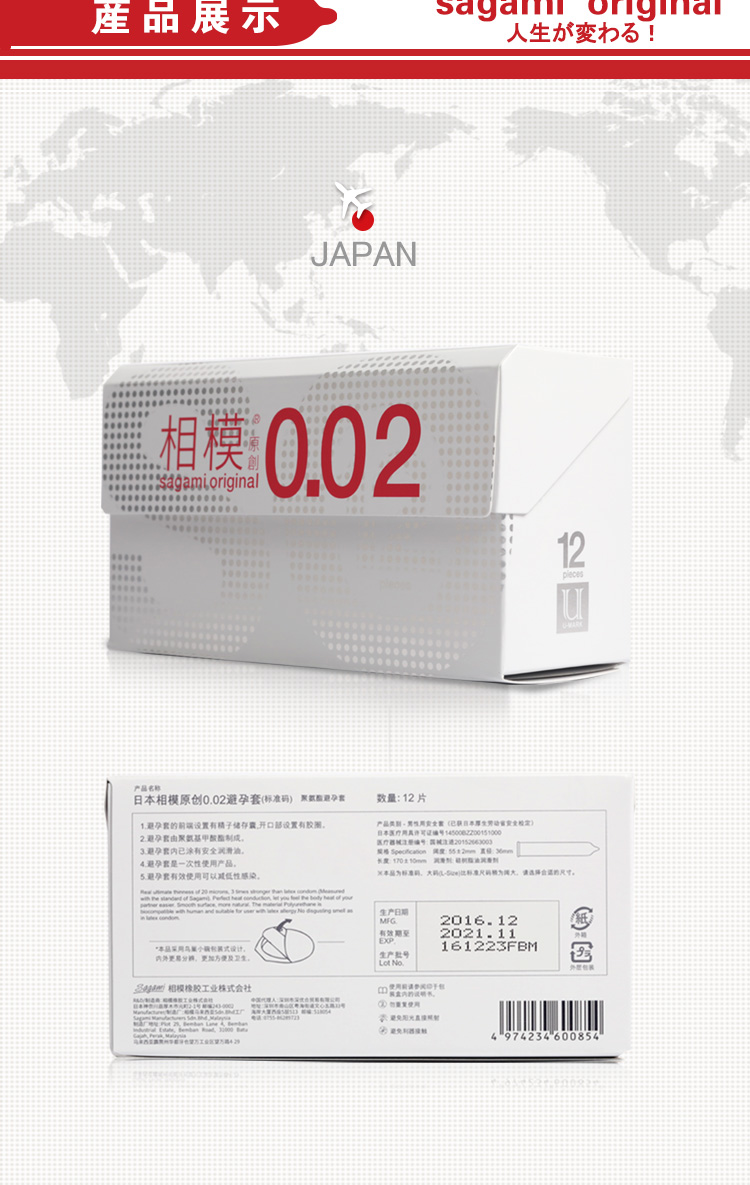 相模sagami002超薄安全套12只/盒日本进口