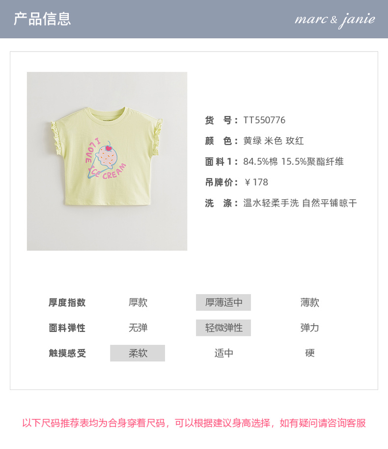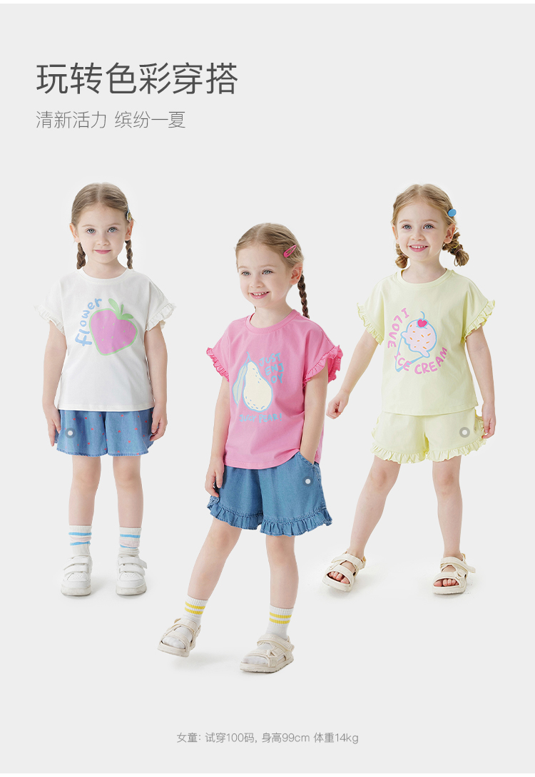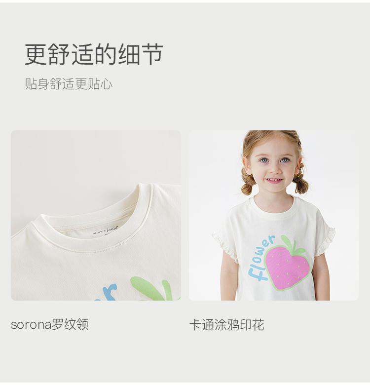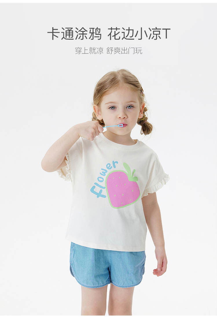 【凉感衣】马克珍妮女童卡通涂鸦花边短袖T恤 宝宝夏装新款550776