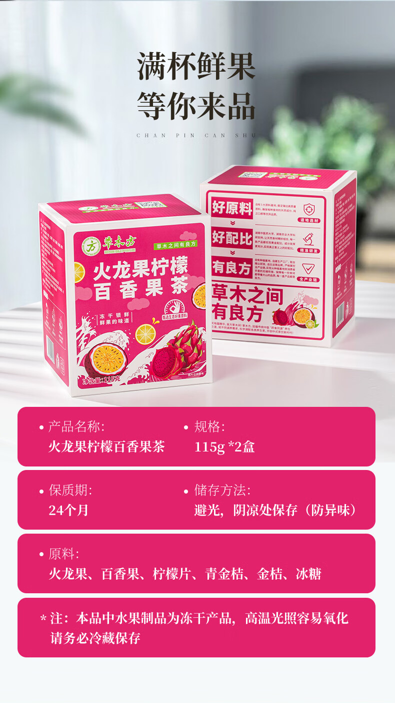 草木方 火龙果金桔柠檬百香果230g*2 草木之间有良方