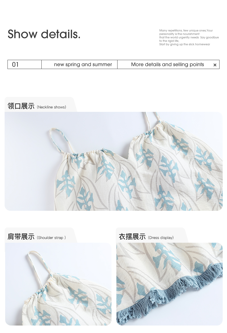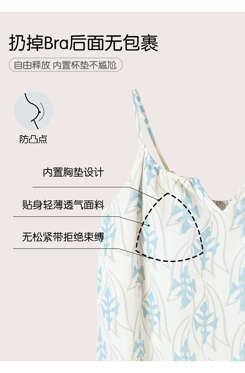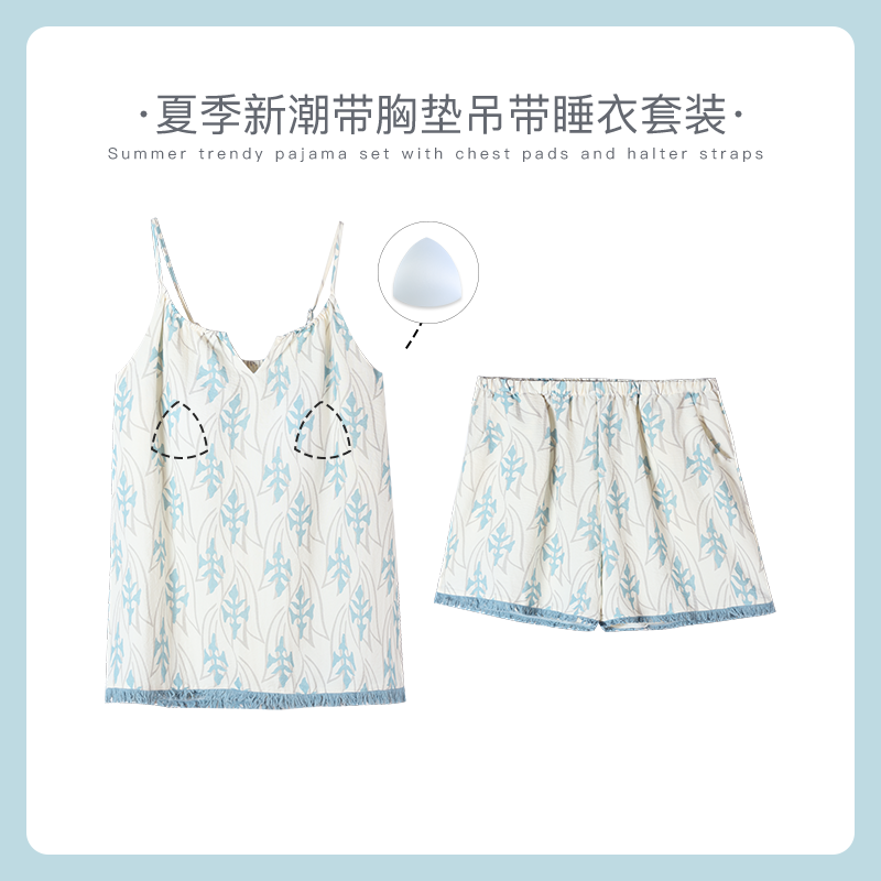 可人儿小众设计新款泡泡绵夏季女士吊带睡衣时尚可外出家居服套装