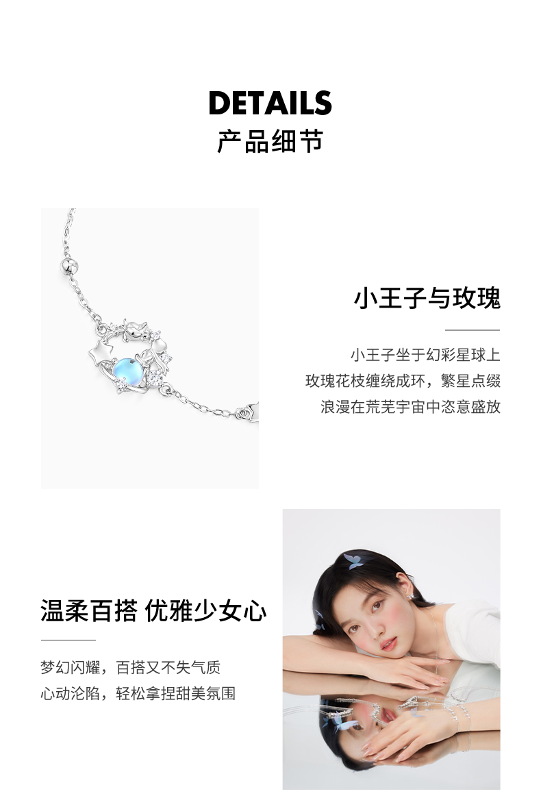 KADER卡蒂罗 小王子与玫瑰手链 女925银轻奢小众生日礼物2023年新款爆款
