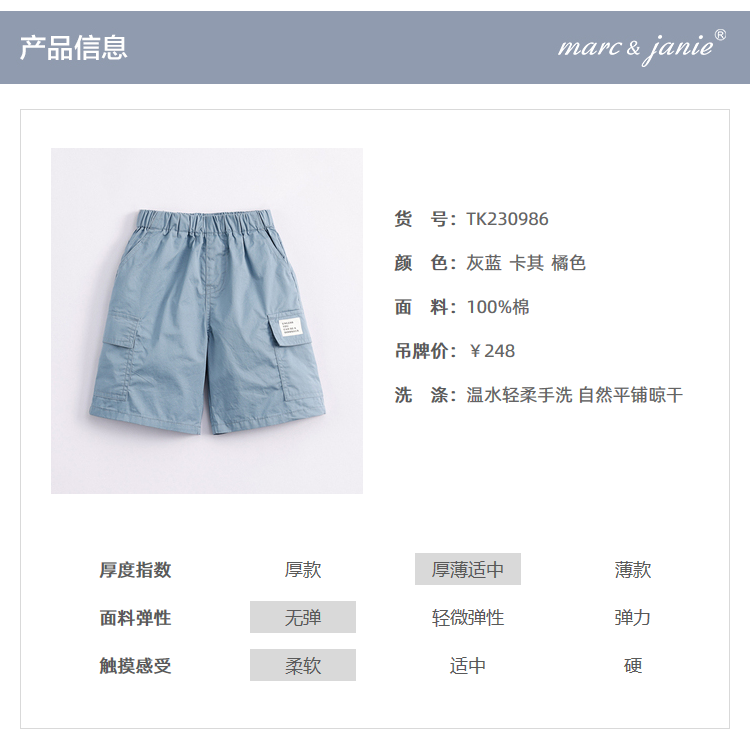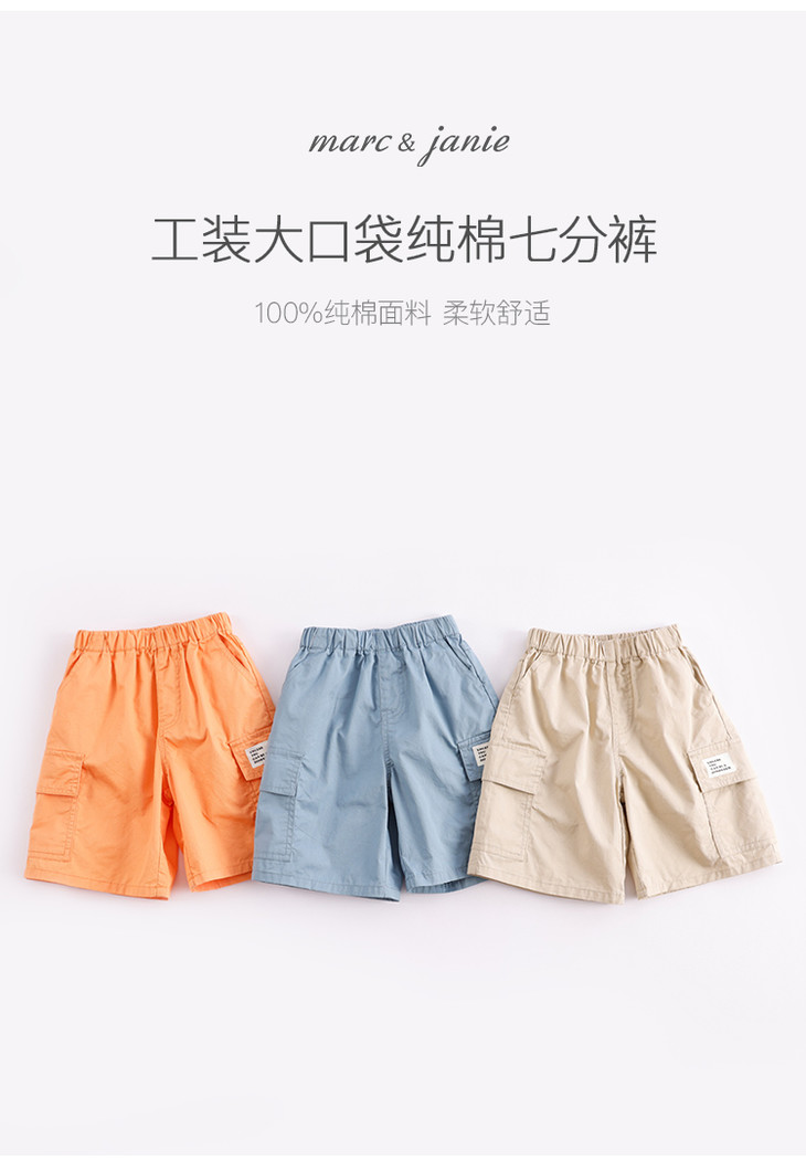 马克珍妮新款夏装男童工装大口袋纯棉七分裤 儿童裤子230986